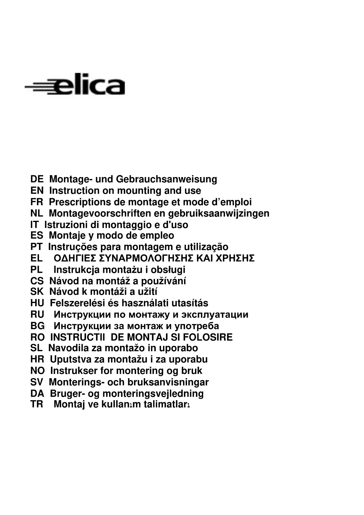 Ico Sand F80 - Hotte ELICA - Notice d'utilisation et mode d'emploi gratuit