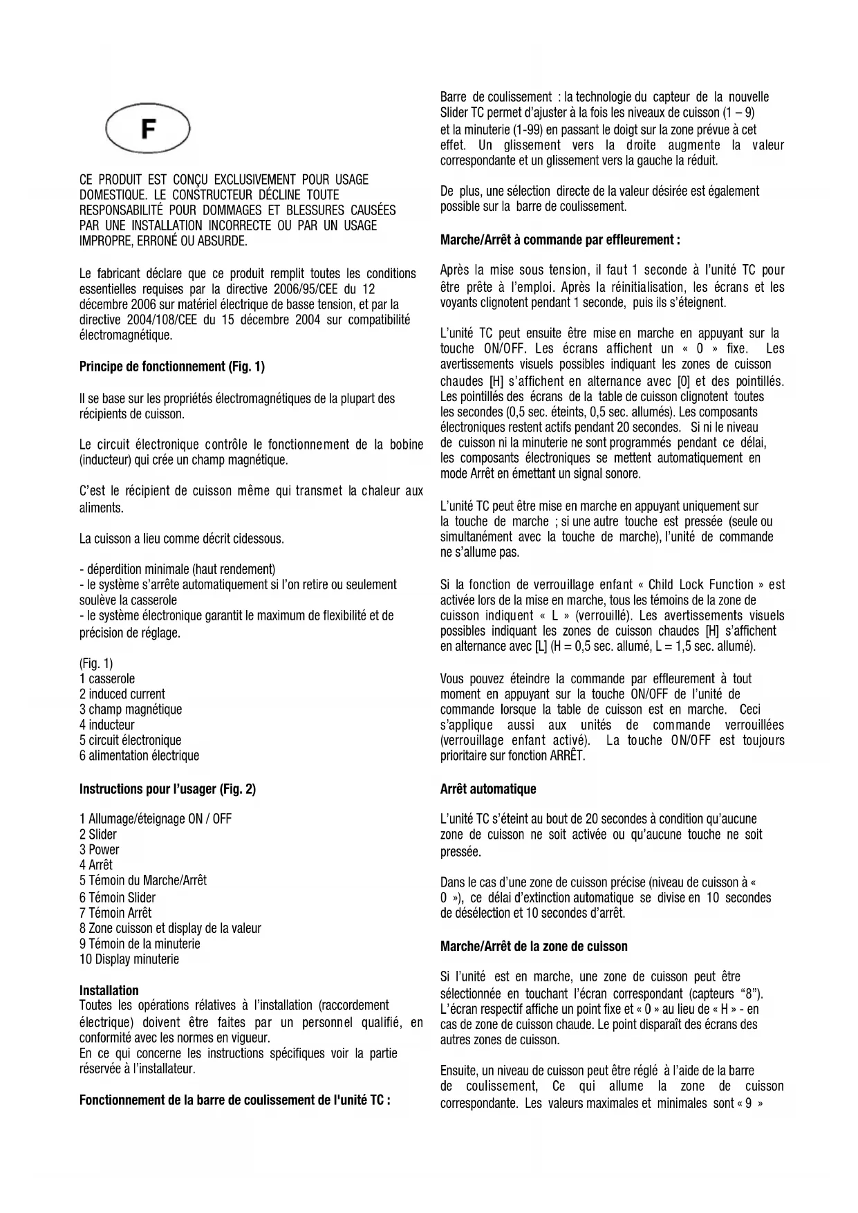 Instructions pour l’usager (Fig. 2)