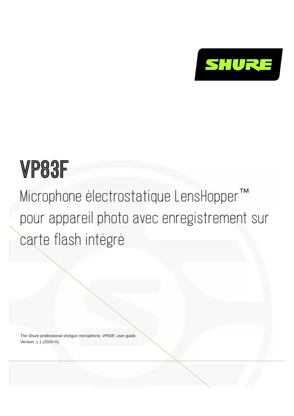 LensHopper VP83F - Microphone SHURE - Notice d'utilisation et mode d'emploi gratuit