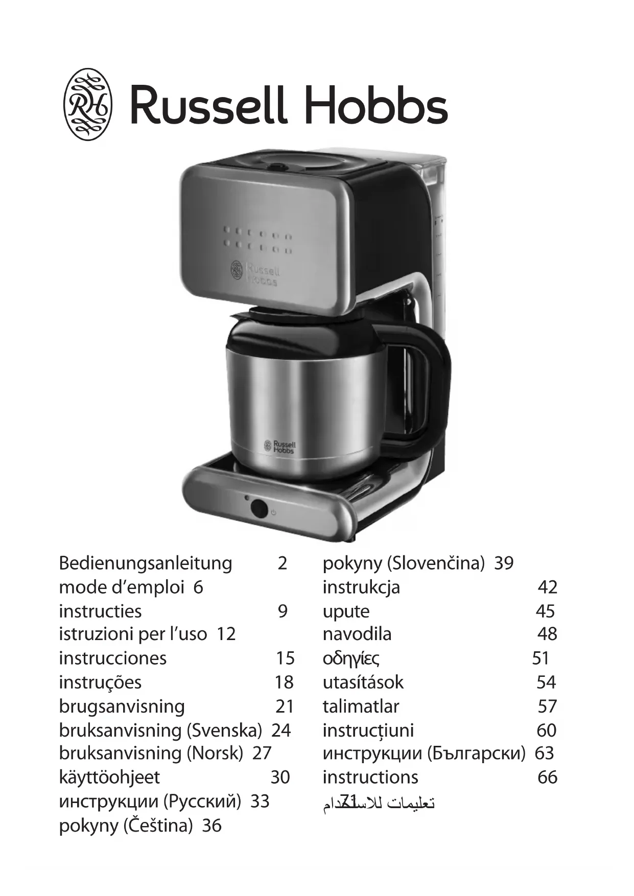 Illumina Thermal 2018156 - Machine à café RUSSELL HOBBS - Notice d'utilisation et mode d'emploi gratuit