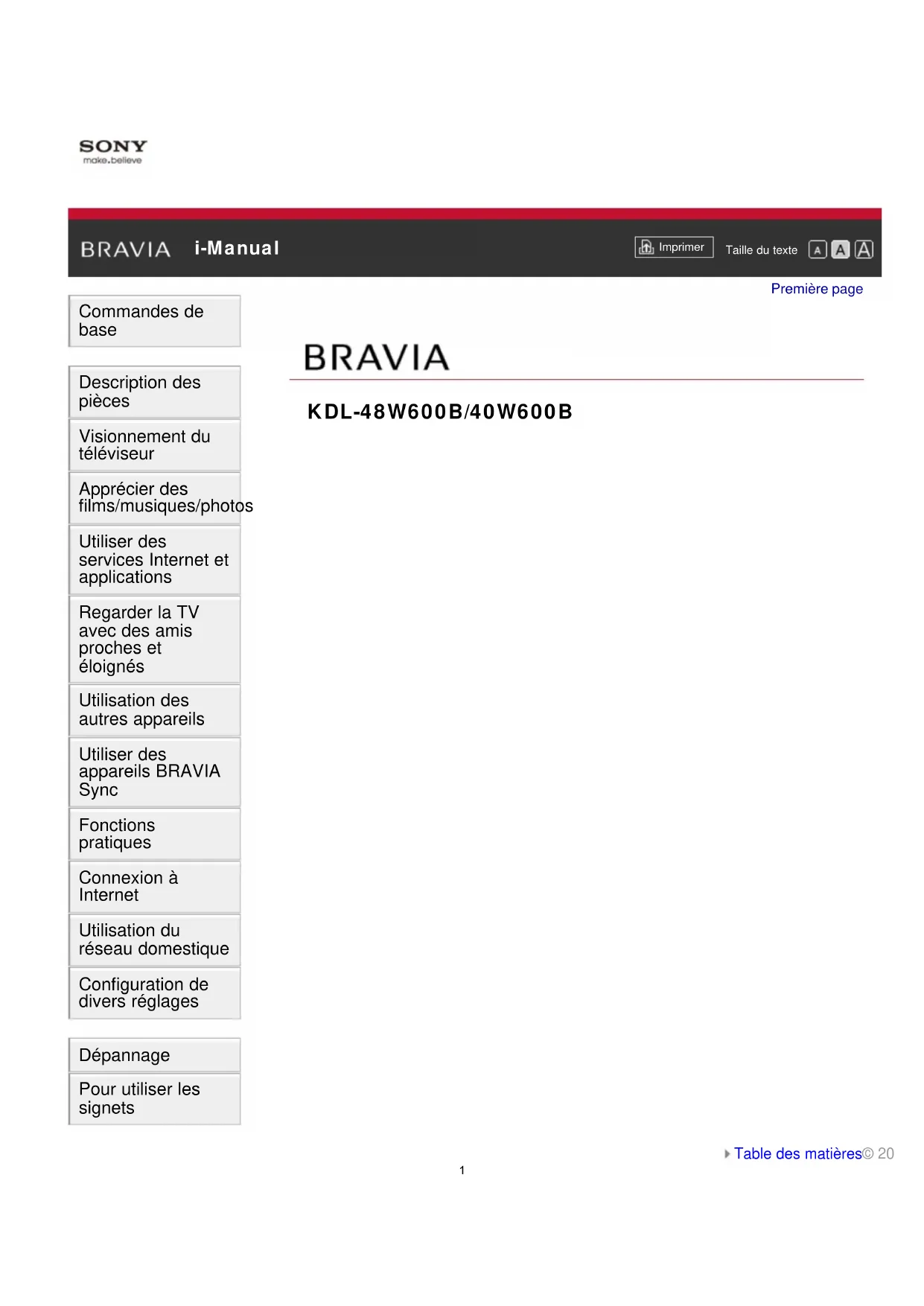 Bravia KDL40W600B - Téléviseur SONY - Notice d'utilisation et mode d'emploi gratuit