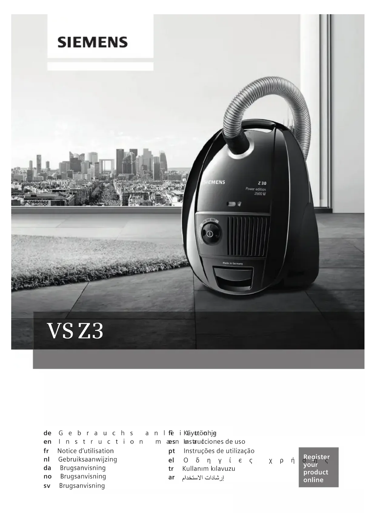 VSZ3A212 - Aspirateur SIEMENS - Notice d'utilisation et mode d'emploi gratuit