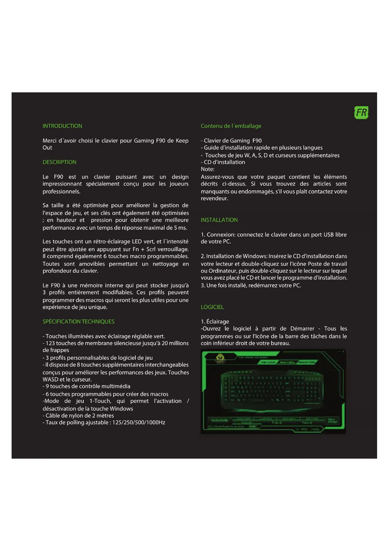 F90 - Clavier KeepOut - Notice d'utilisation et mode d'emploi gratuit