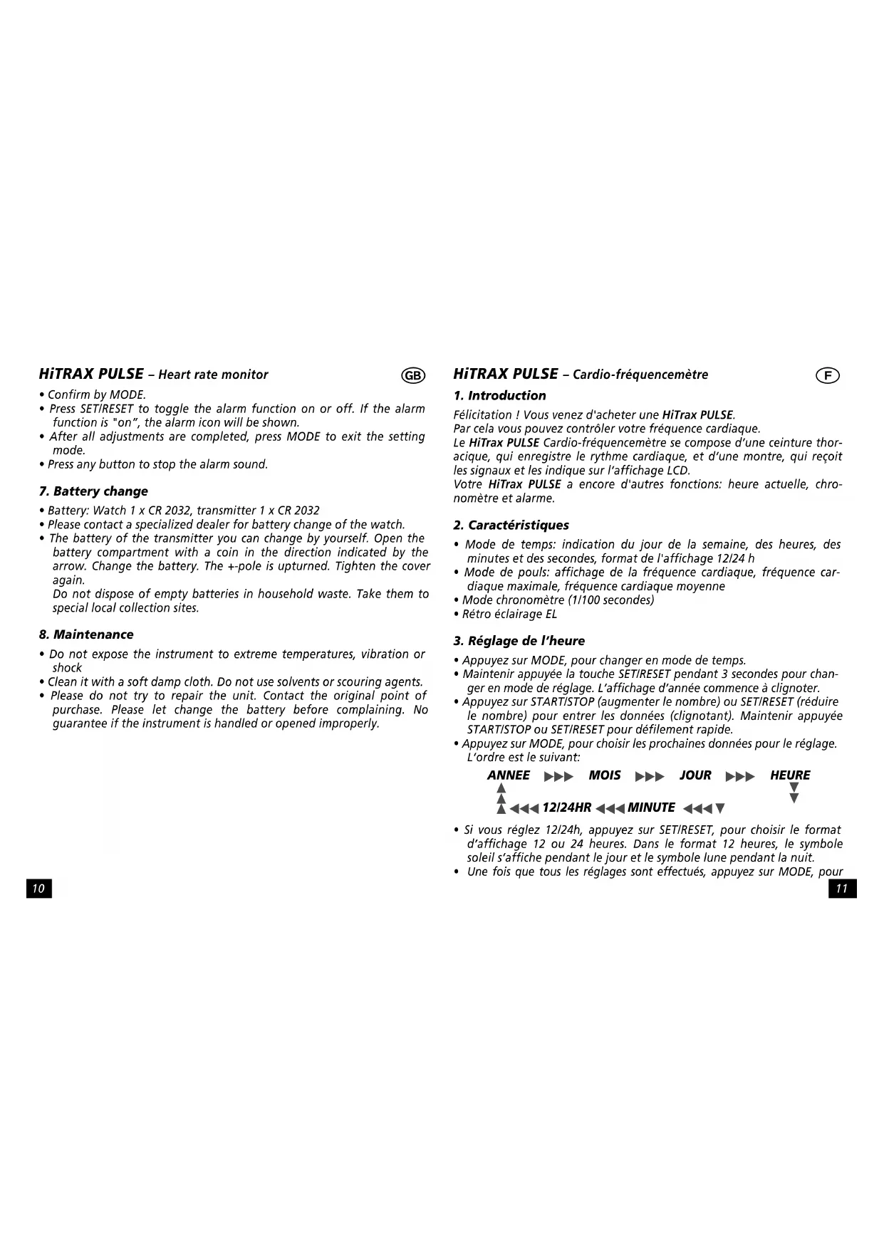- Appuyez sur MODE, pour changer en mode de pouls. Le symbole cœur apparait sur le display.