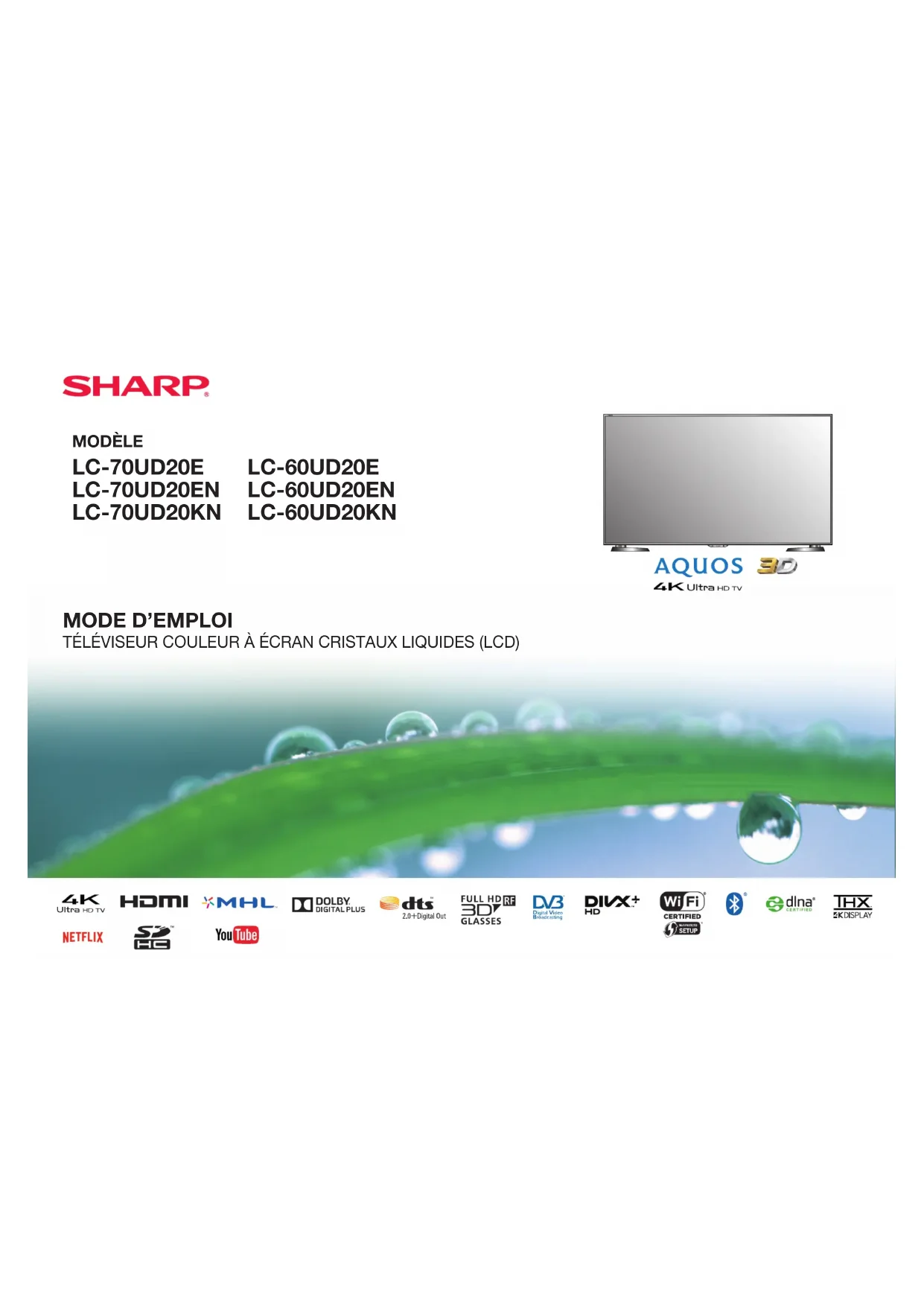 LC70UD20EN - Téléviseur SHARP - Notice d'utilisation et mode d'emploi gratuit