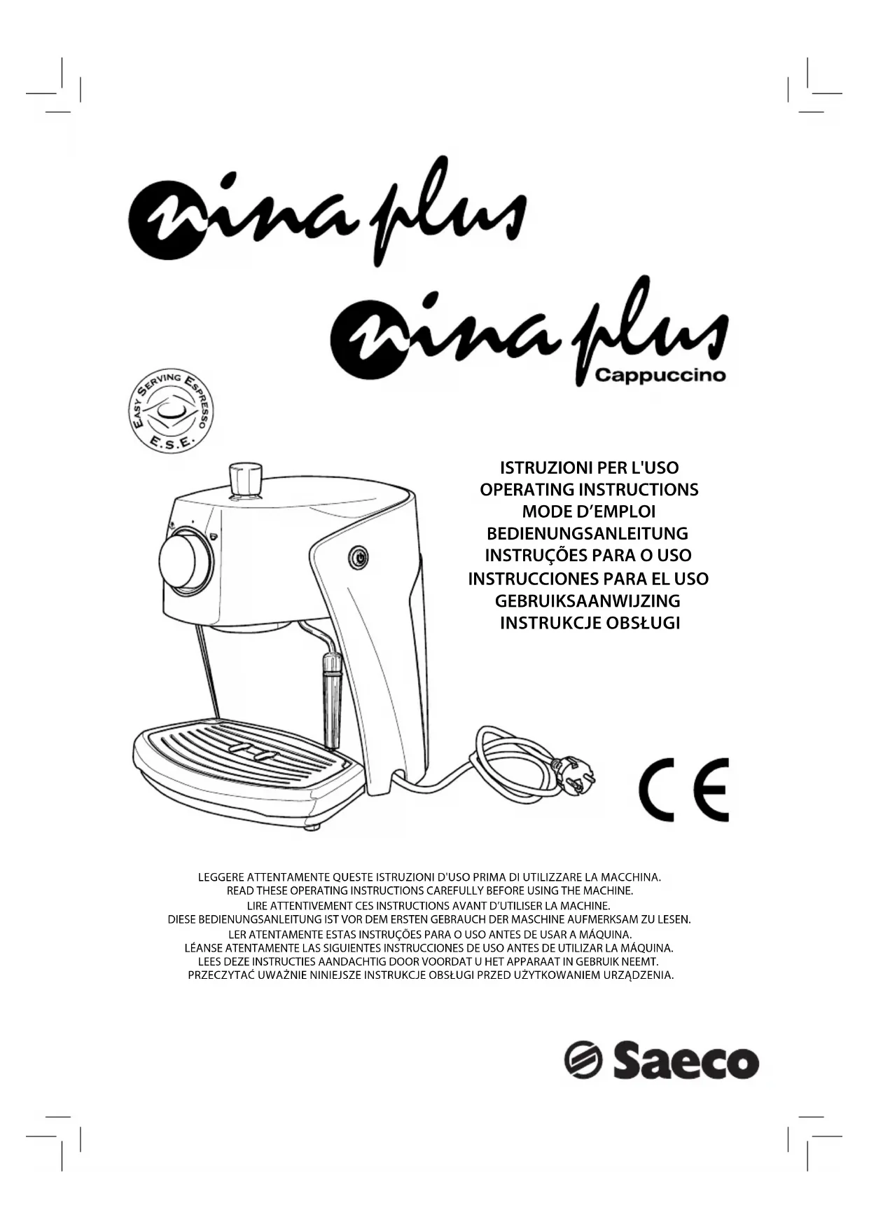 Retrouvez gratuitement la notice de l'appareil Saeco Nina Plus PHILIPS au format PDF.