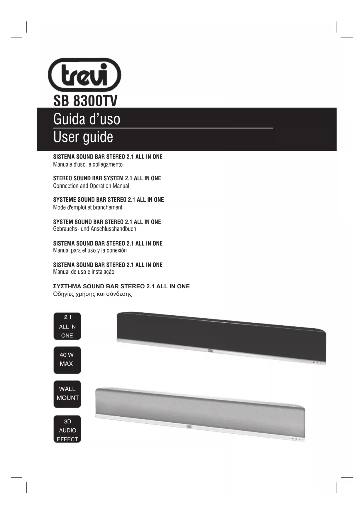 SB 8300TV - Barre de son Trevi - Notice d'utilisation et mode d'emploi gratuit