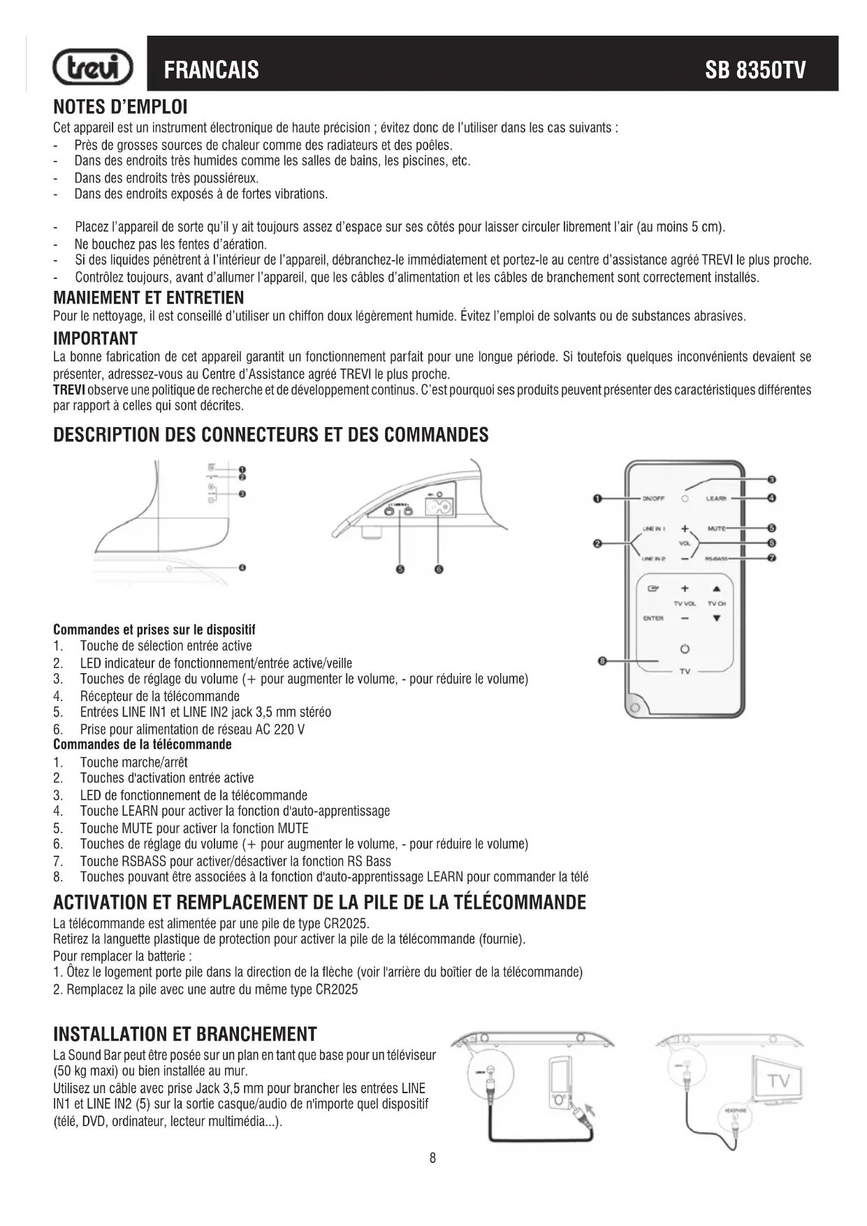 SB 8350TV - Barre de son Trevi - Notice d'utilisation et mode d'emploi gratuit