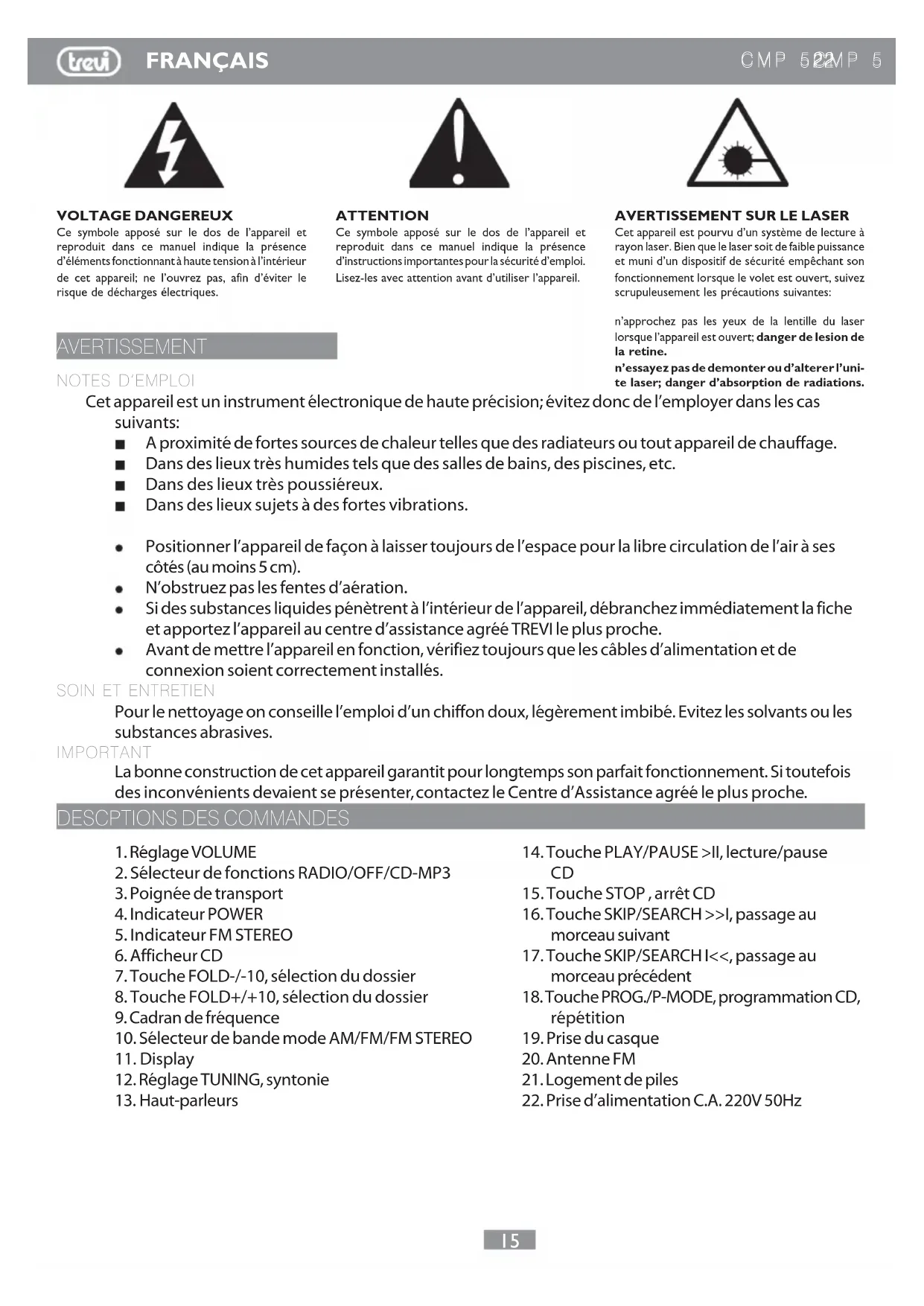 CMP 522 - Système hifi Trevi - Notice d'utilisation et mode d'emploi gratuit