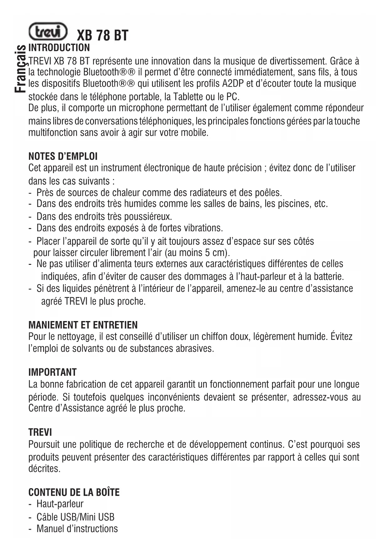 MODE D'EMPLOI XB 78 BT Trevi