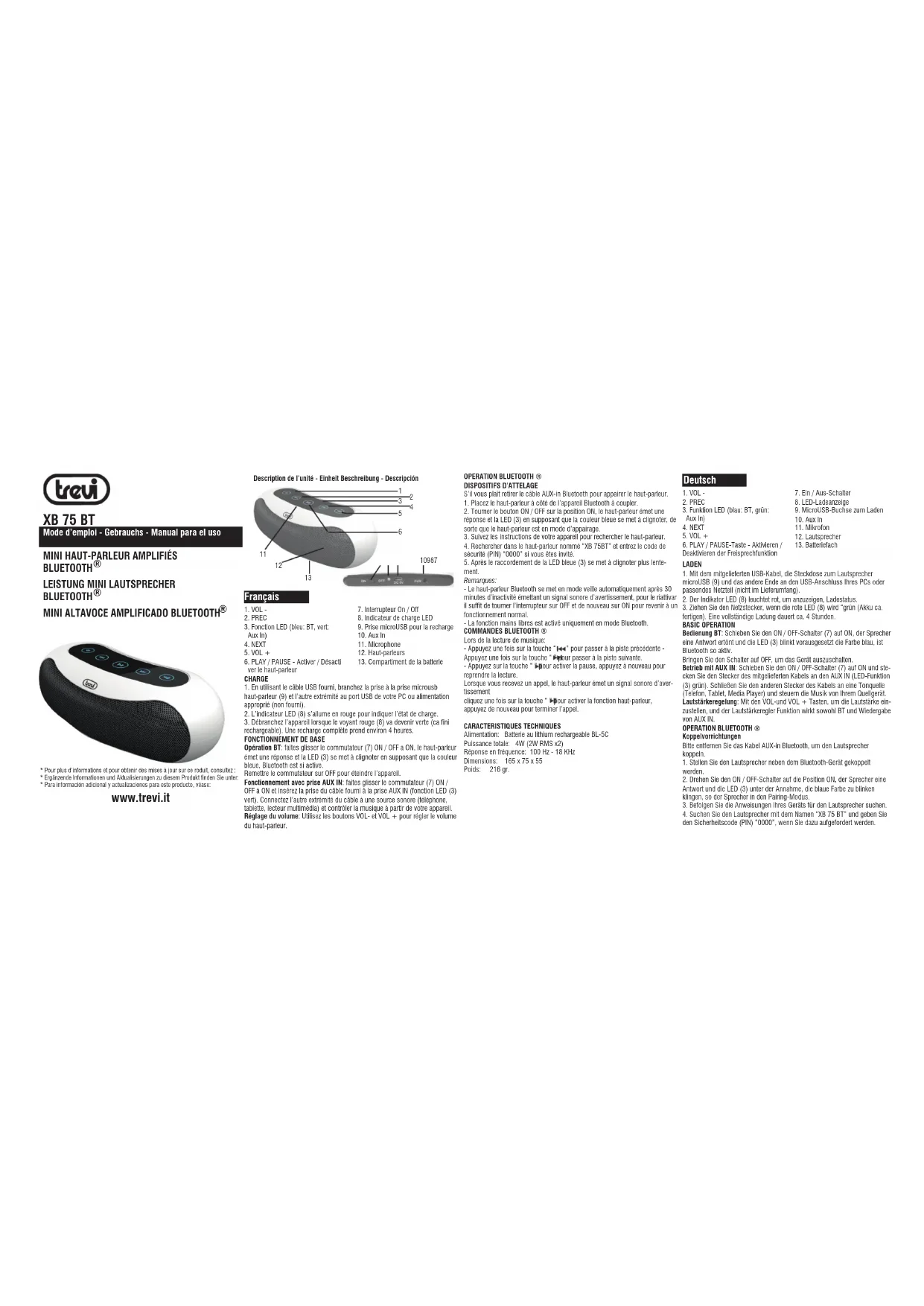 Retrouvez gratuitement la notice de l'appareil XB 75 BT Trevi au format PDF.