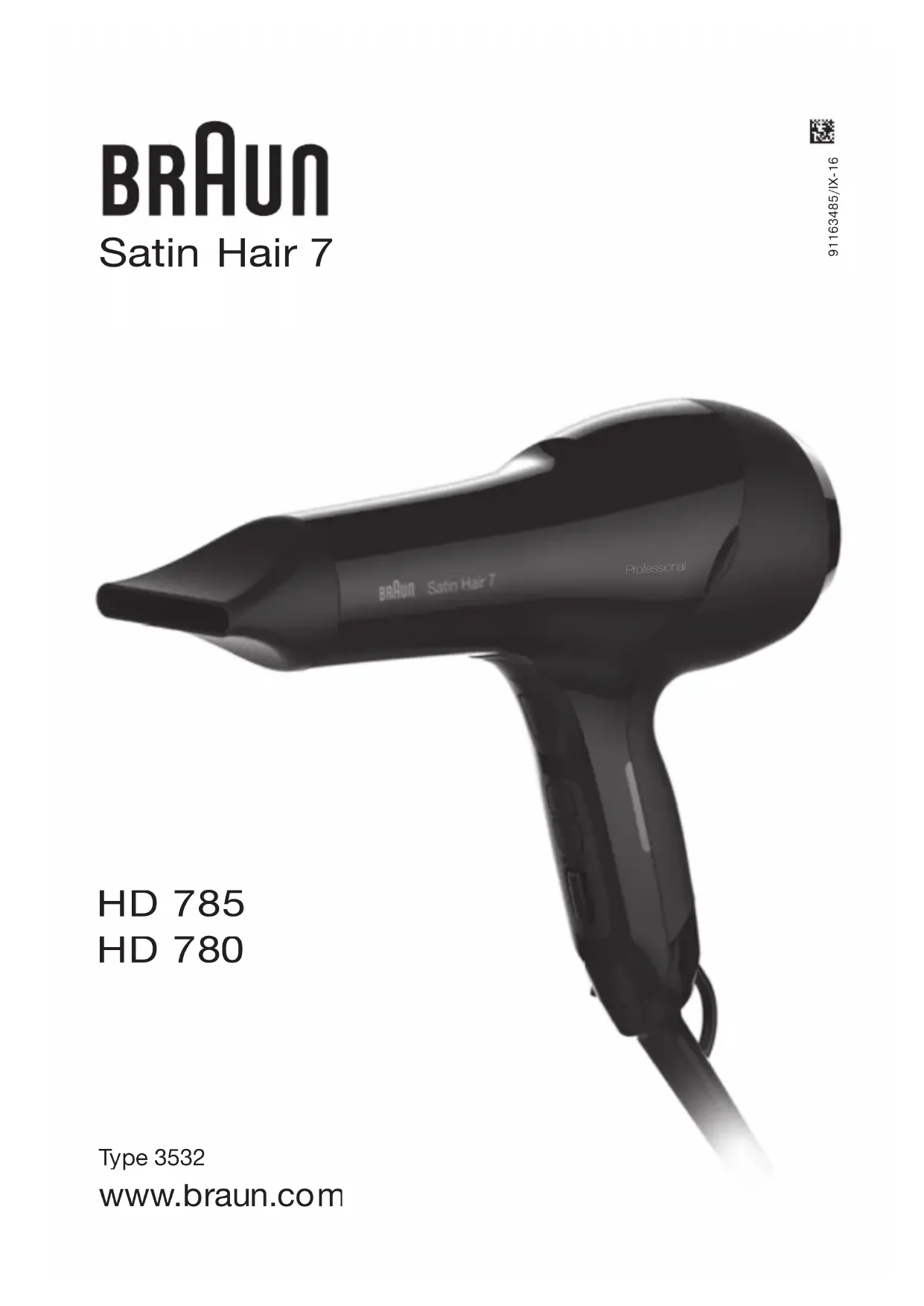 Retrouvez gratuitement la notice de l'appareil SatinHair 7 HD 785 SensoDryer BRAUN au format PDF.
