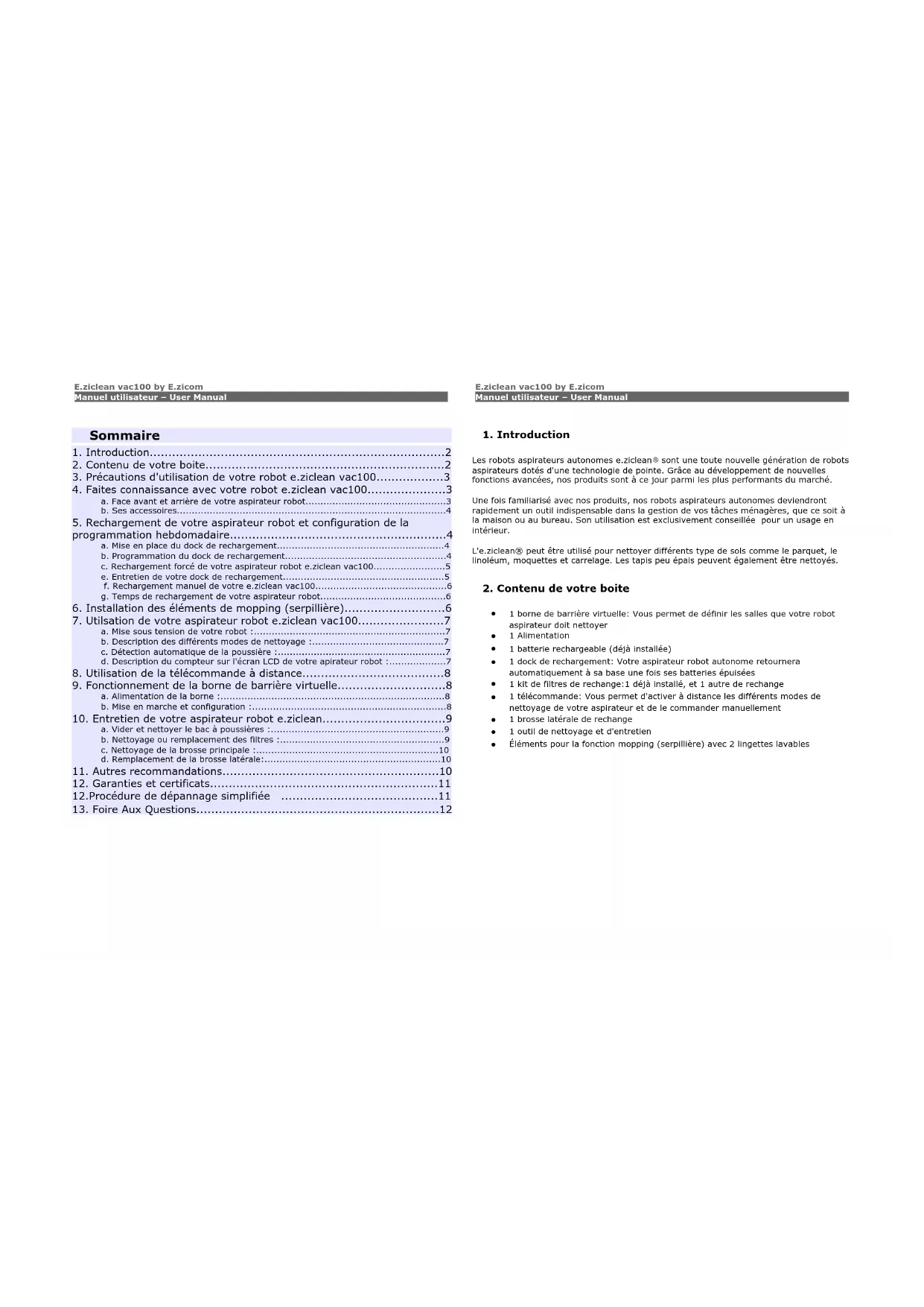 Vac100 Guide de l'utilisateur User Manual Français / EnglishE.ziclean vac100 by E.zicom Manuel utilisateur – User Manual E.ziclean vac100 by E.zicom Manuel utilisateur – User Manual Sommaire