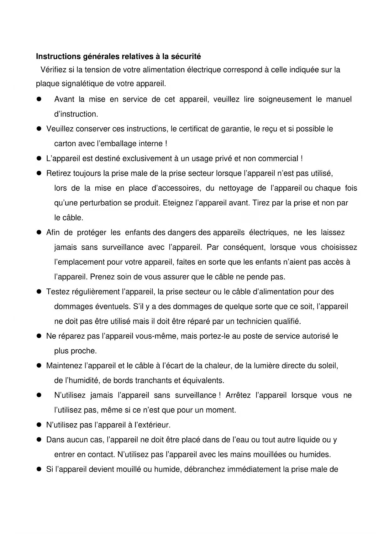 *****Instructions générales relatives à la sécurité