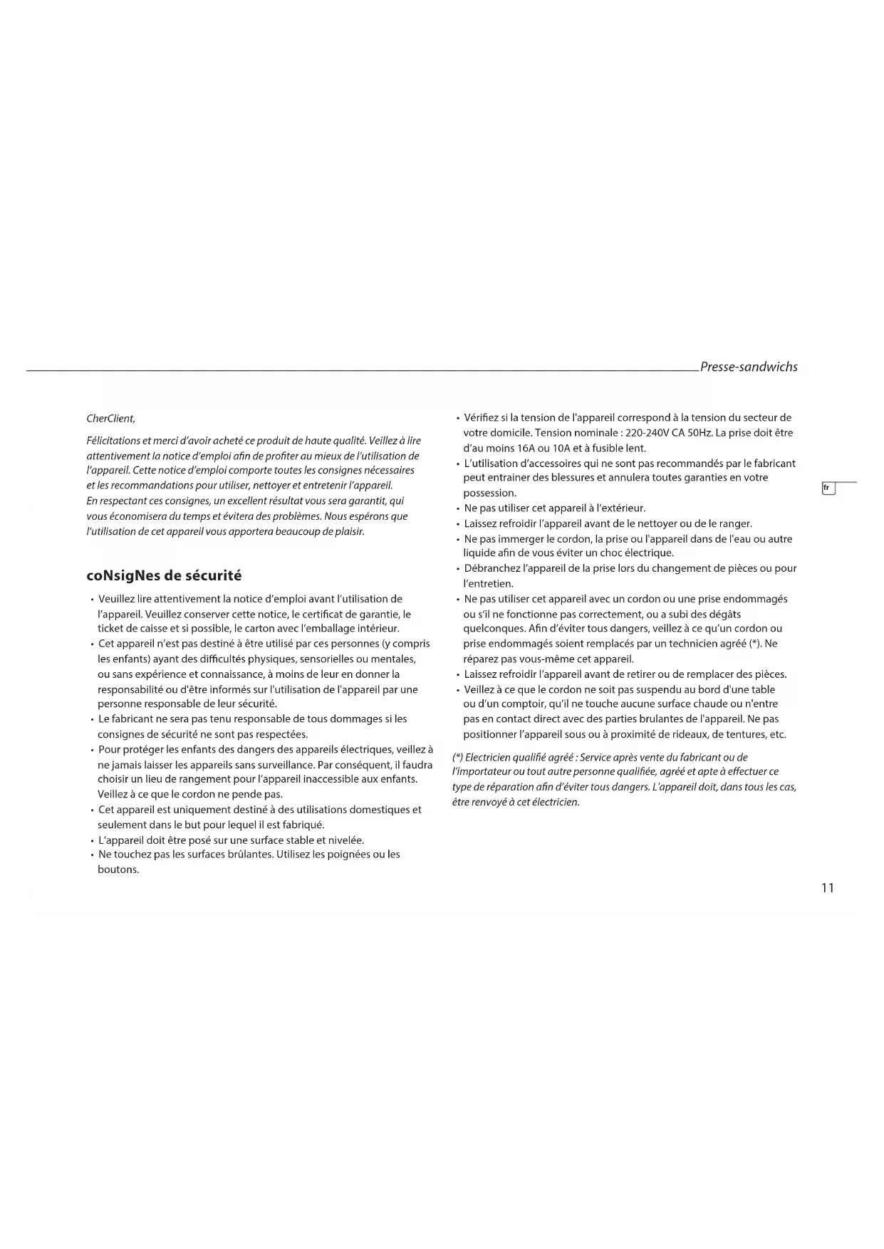 (*) Electricien qualié agréé: Service après vente du fabricant ou de