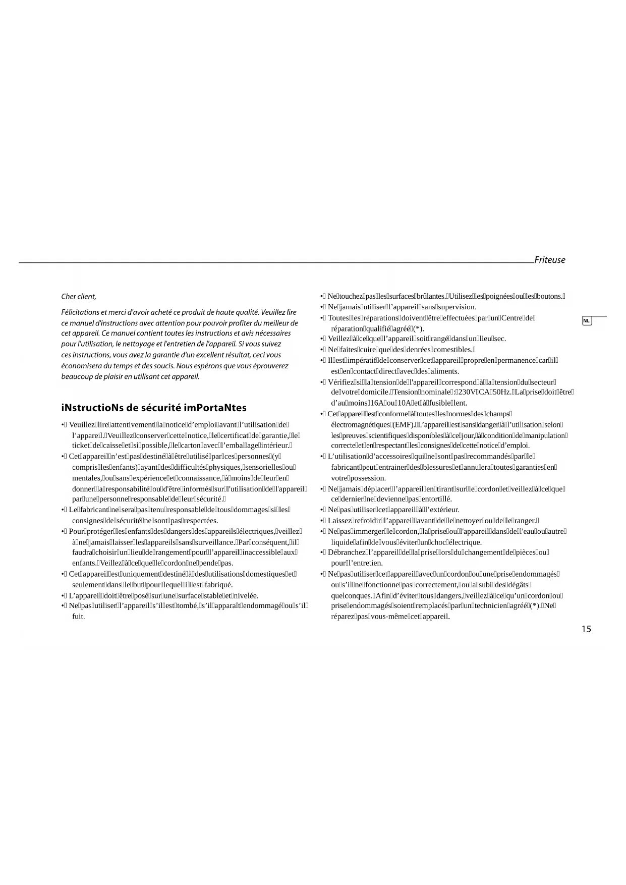 iNstructioNs de sécurité imPortaNtes