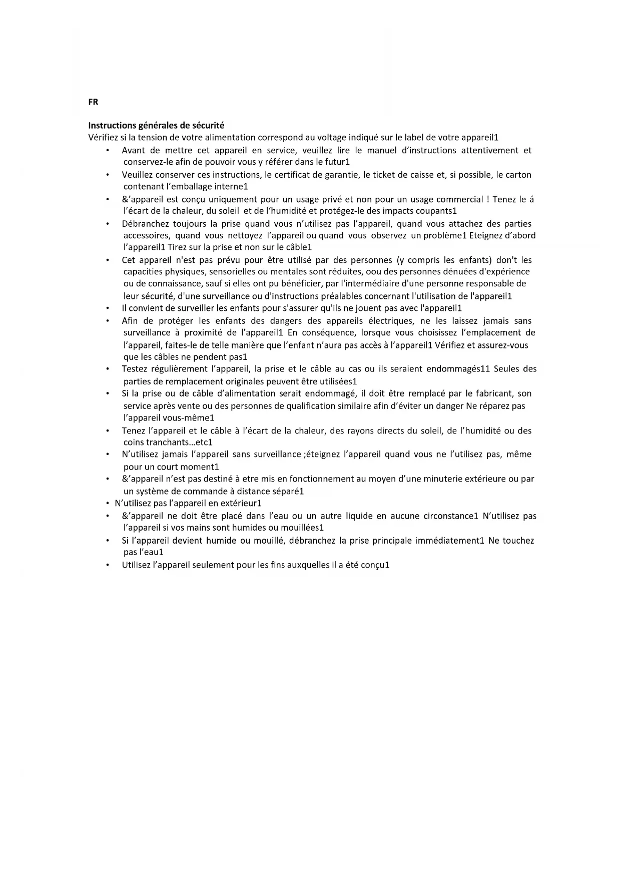• Testez régulièrement l’appareil, la prise et le câble au cas ou ils seraient endommagés.. Seules des