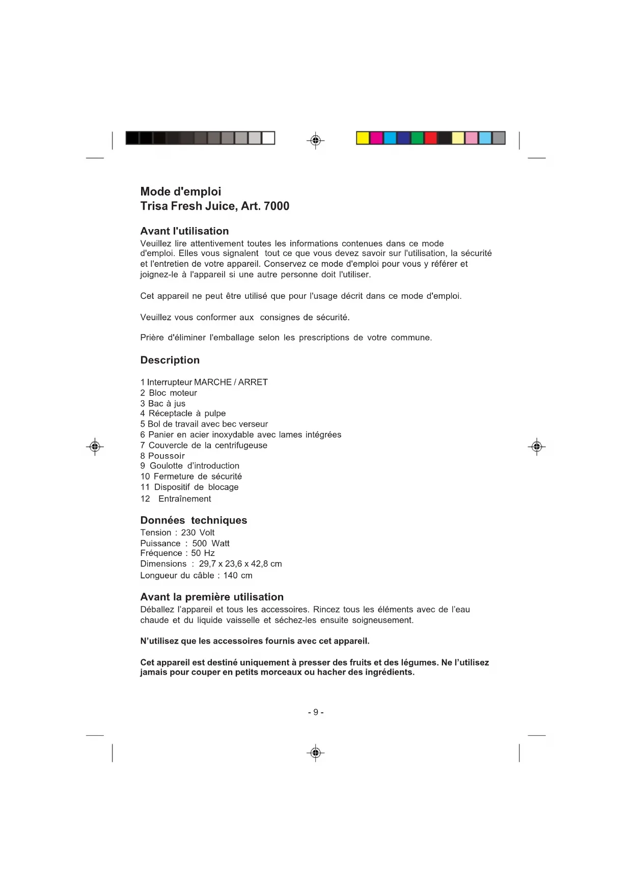 MODE D'EMPLOI Fresh Juice 7000 TRISA