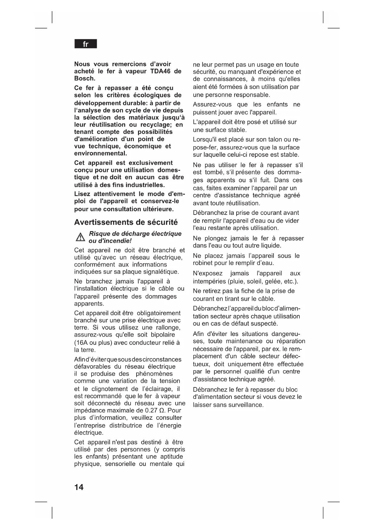 Retrouvez gratuitement la notice de l'appareil TDA4630 sensixx B3 secure Steam BOSCH au format PDF.