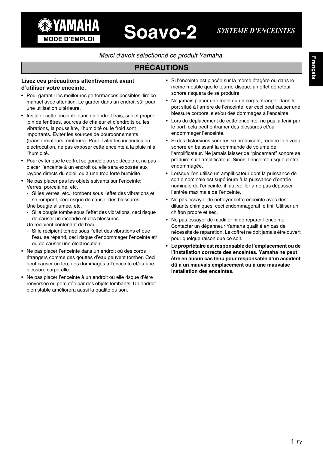 SOAVO-2 - Enceinte acoustique YAMAHA - Notice d'utilisation et mode d'emploi gratuit
