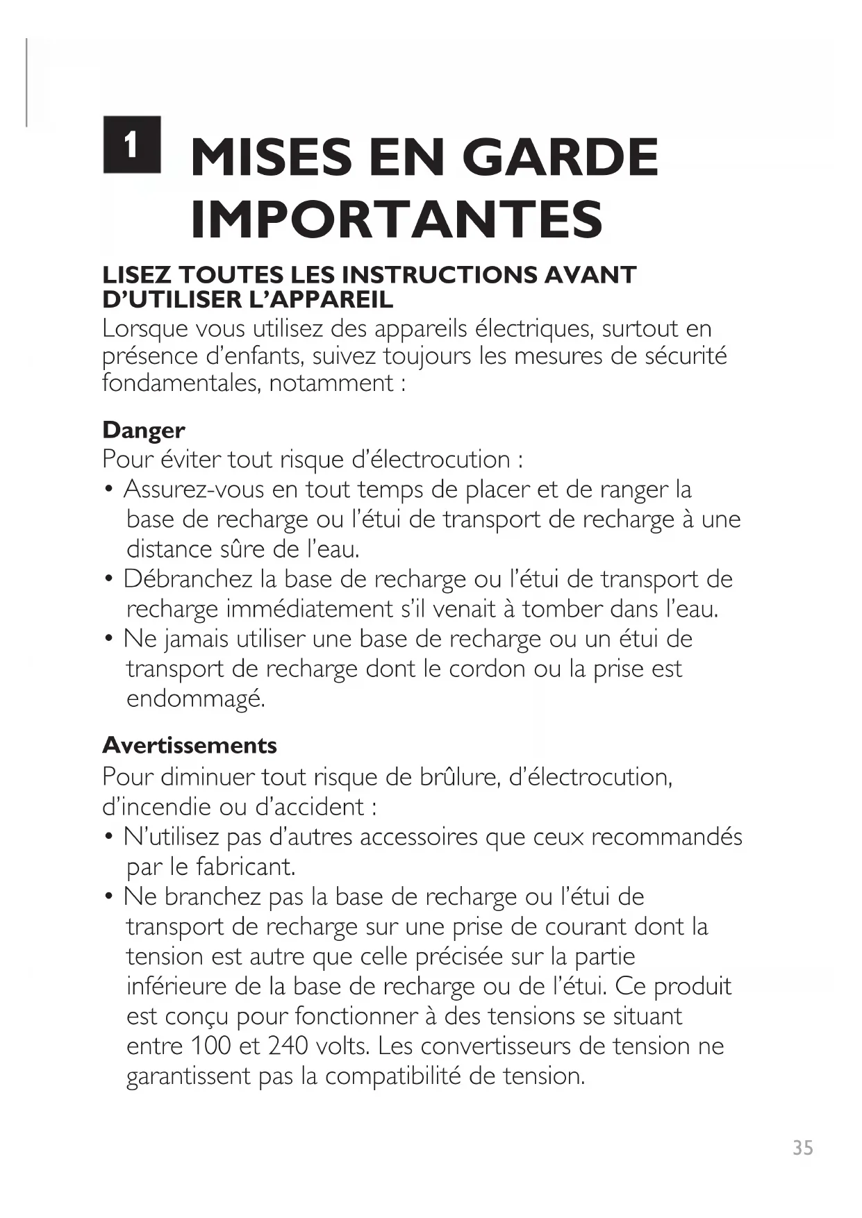 • N’utilisez pas la base de recharge ou l’étui de transport