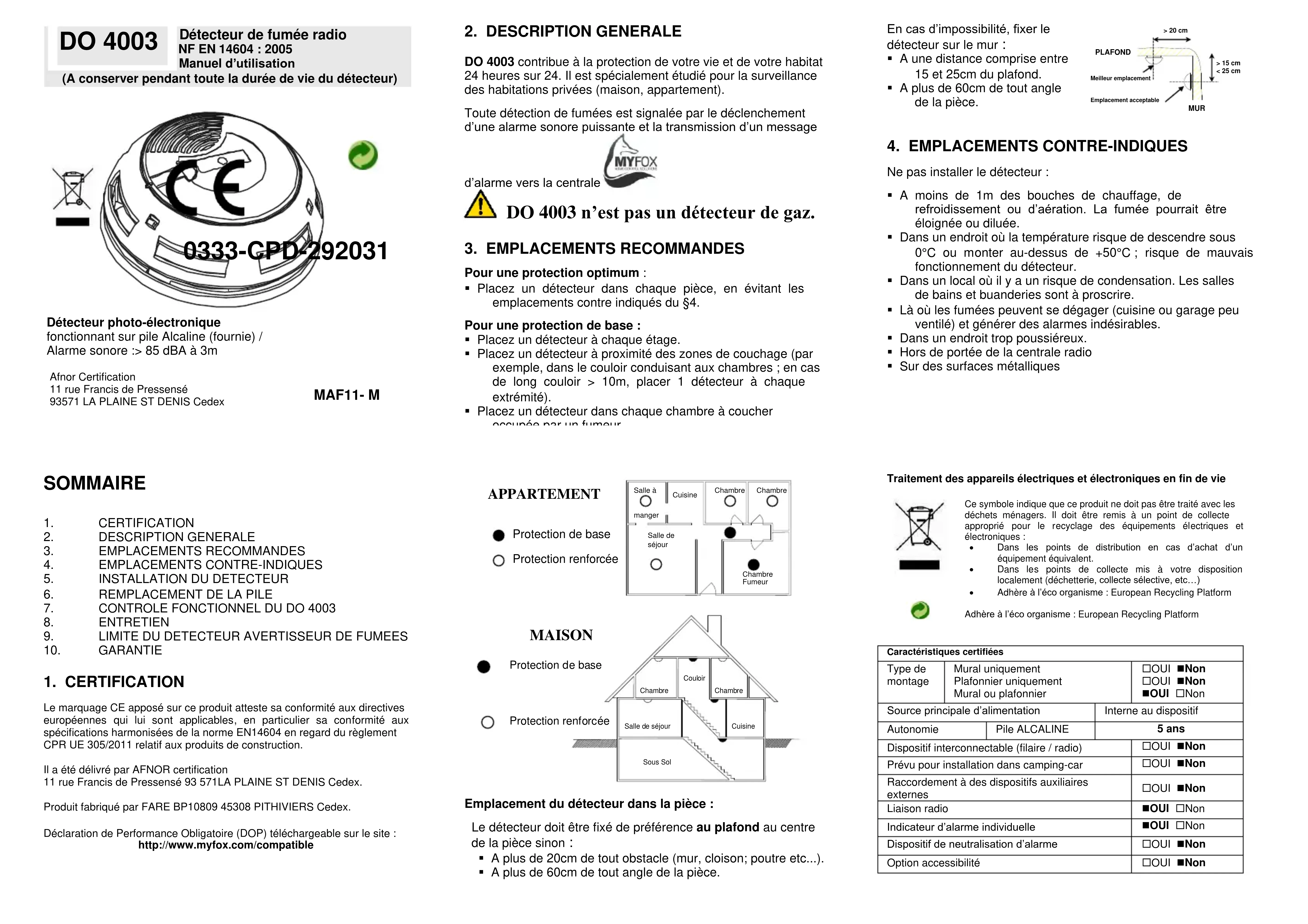Retrouvez gratuitement la notice de l'appareil DO4003 MYFOX au format PDF.