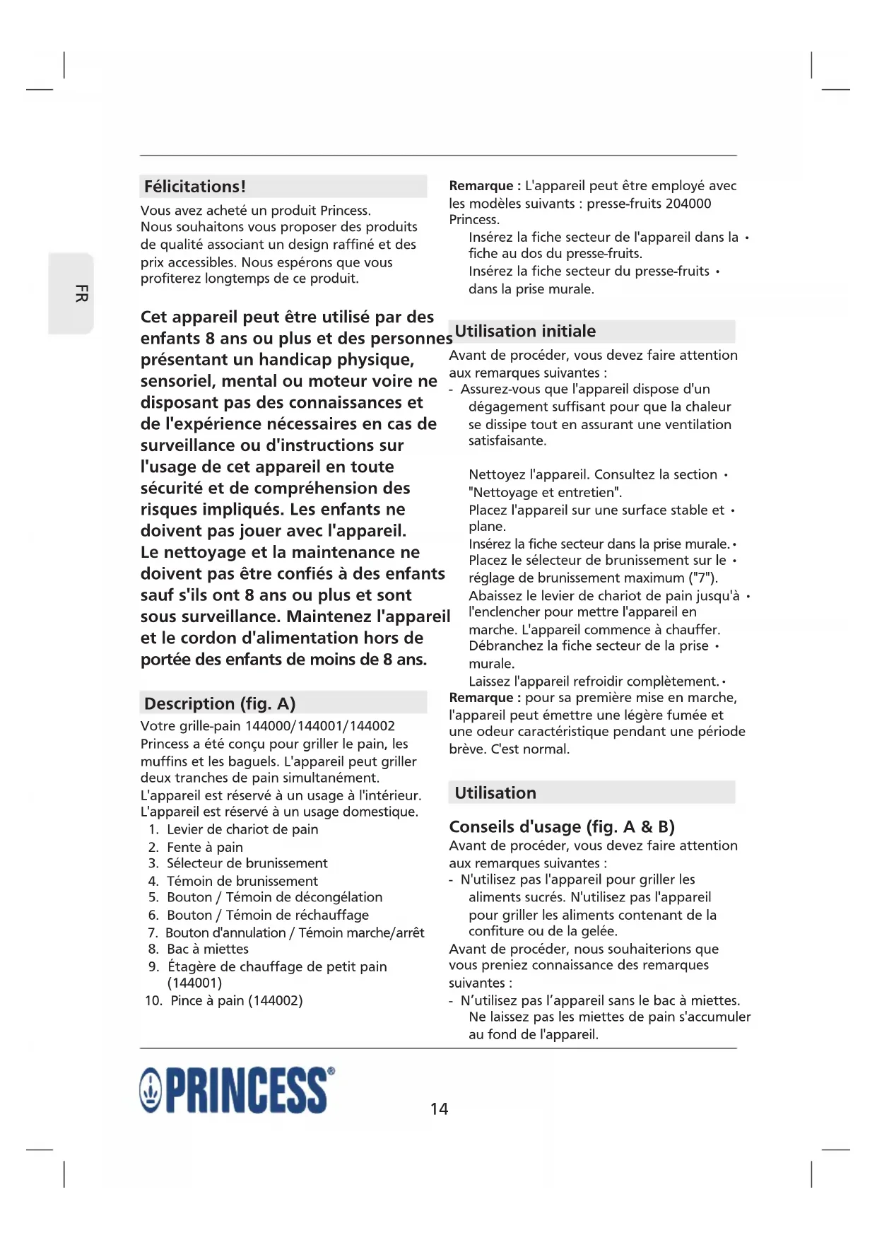 Retrouvez gratuitement la notice de l'appareil Compact4All Toaster 144000 PRINCESS au format PDF.