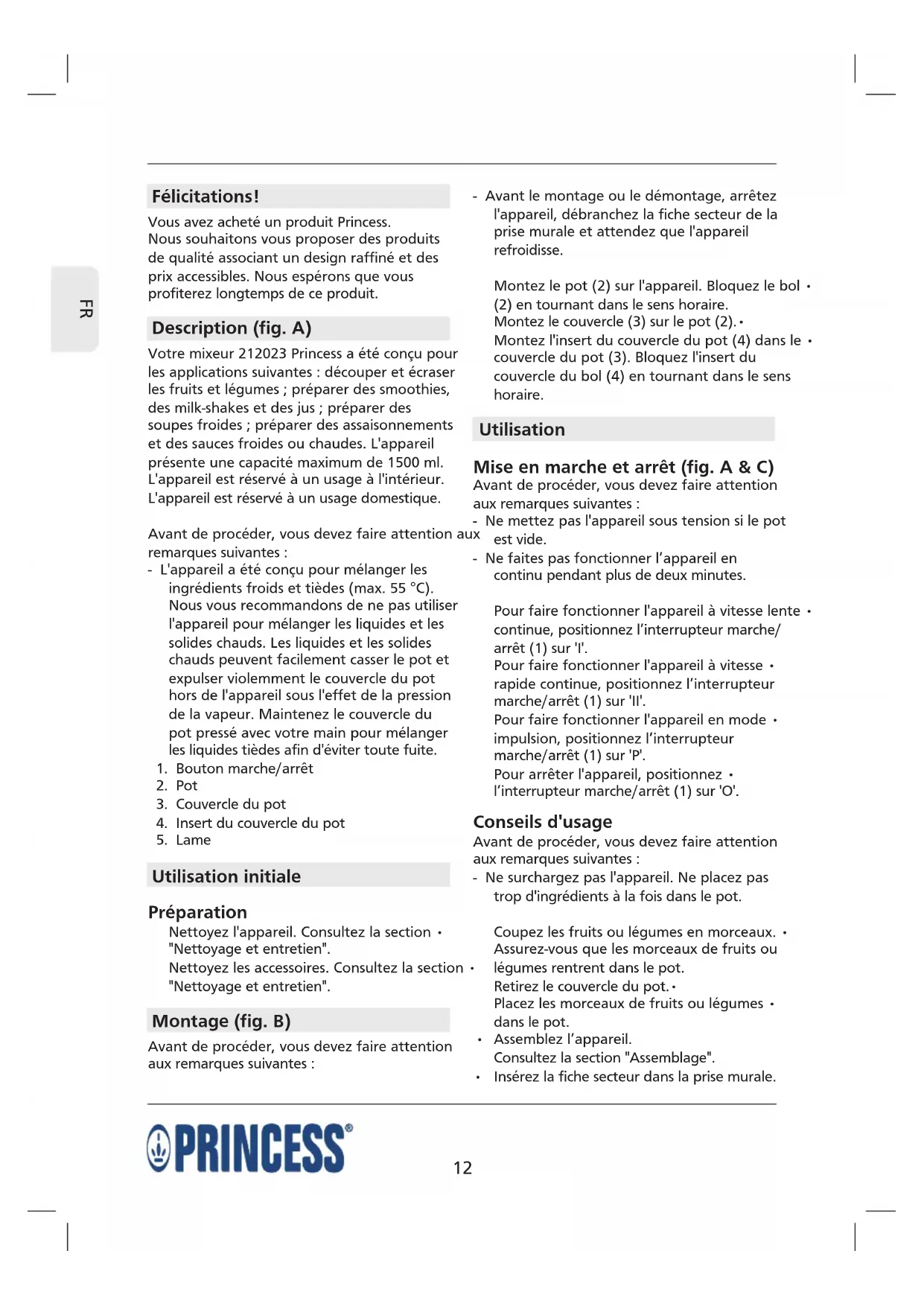MODE D'EMPLOI Power Blender PRINCESS