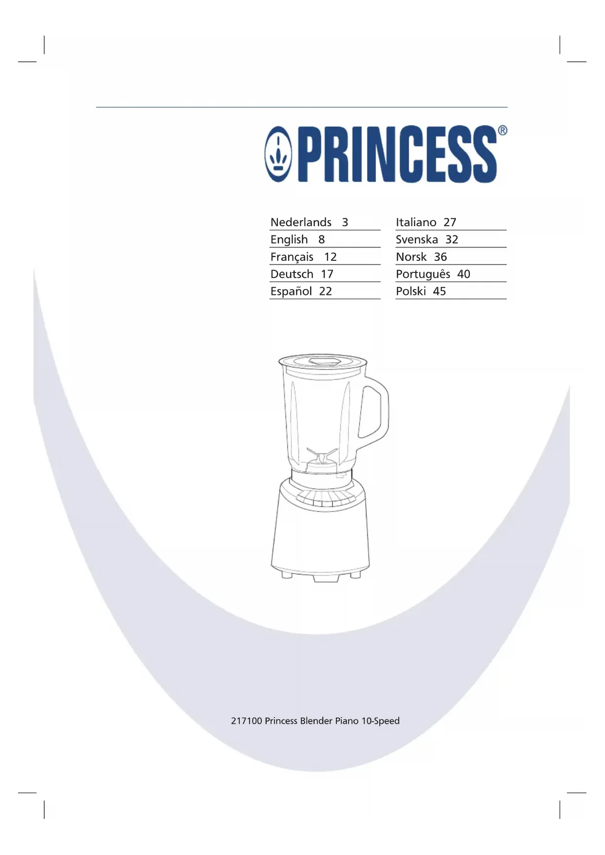 Piano Blender 10Speed - Blender PRINCESS - Notice d'utilisation et mode d'emploi gratuit