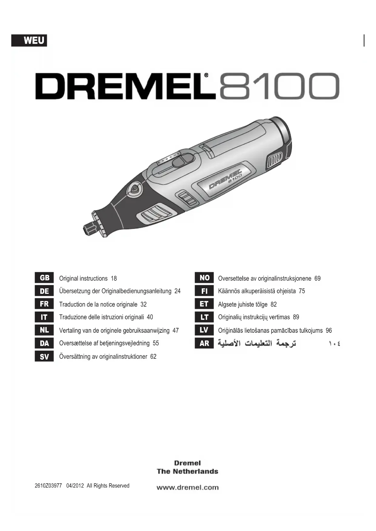 Retrouvez gratuitement la notice de l'appareil 8200 DREMEL au format PDF.