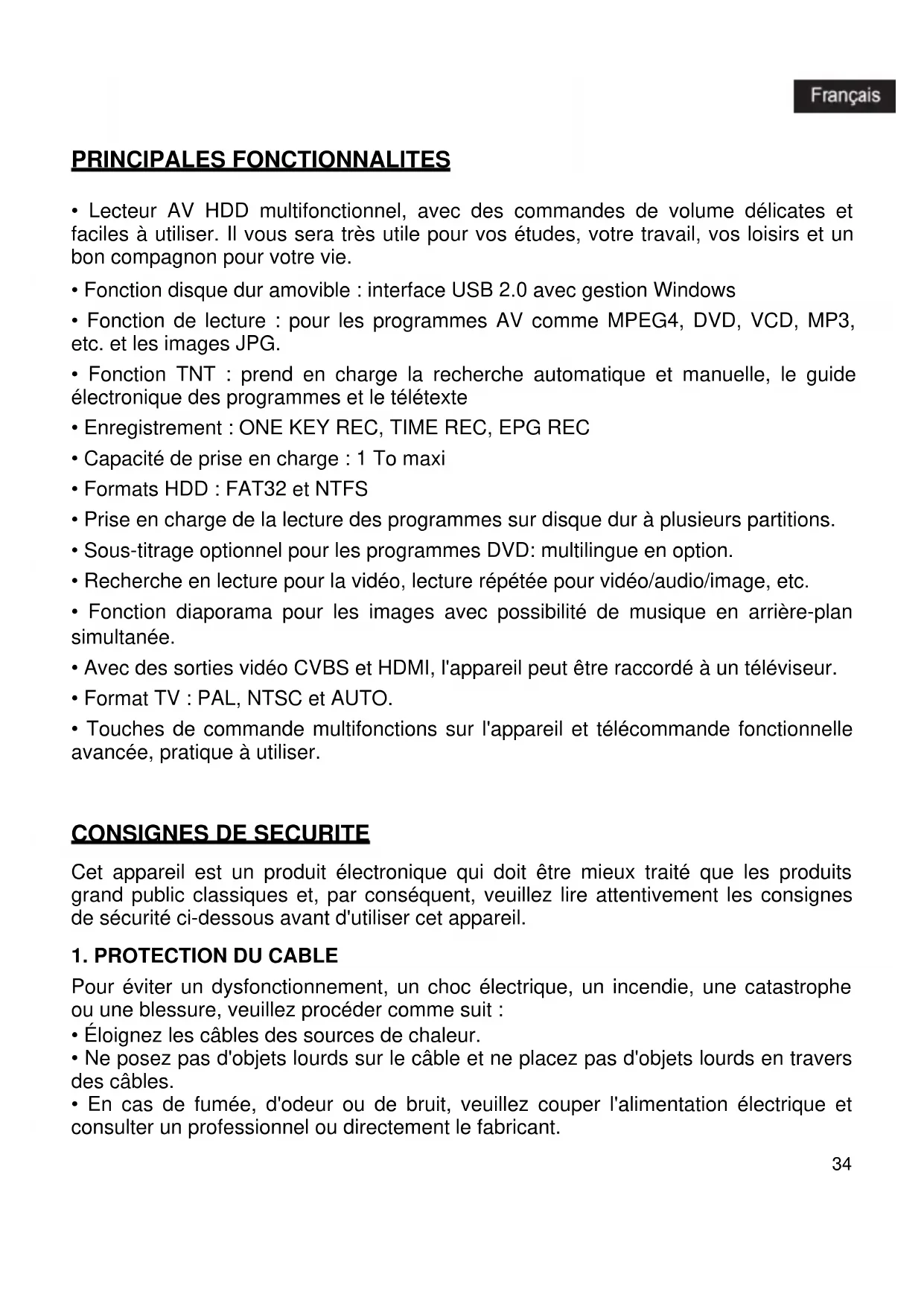 Cet apparéil est un produit électronique qui doit être比较好 que les produits grand public classiques et, par conséquent, veillez dire attentivement les consignes de sécurité ci-dessous avant d'utiliser cet apparéil.