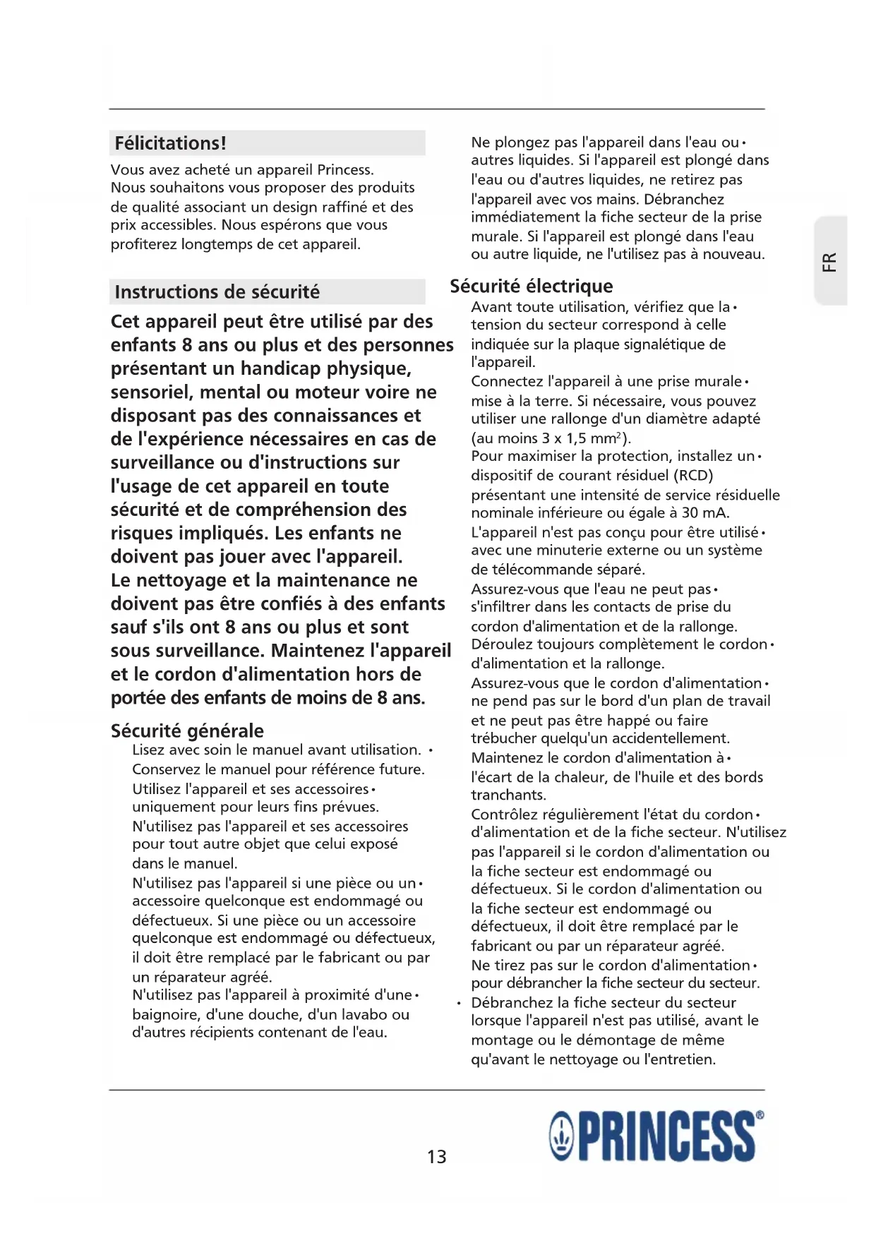 Vous avez acheté un appareil Princess.