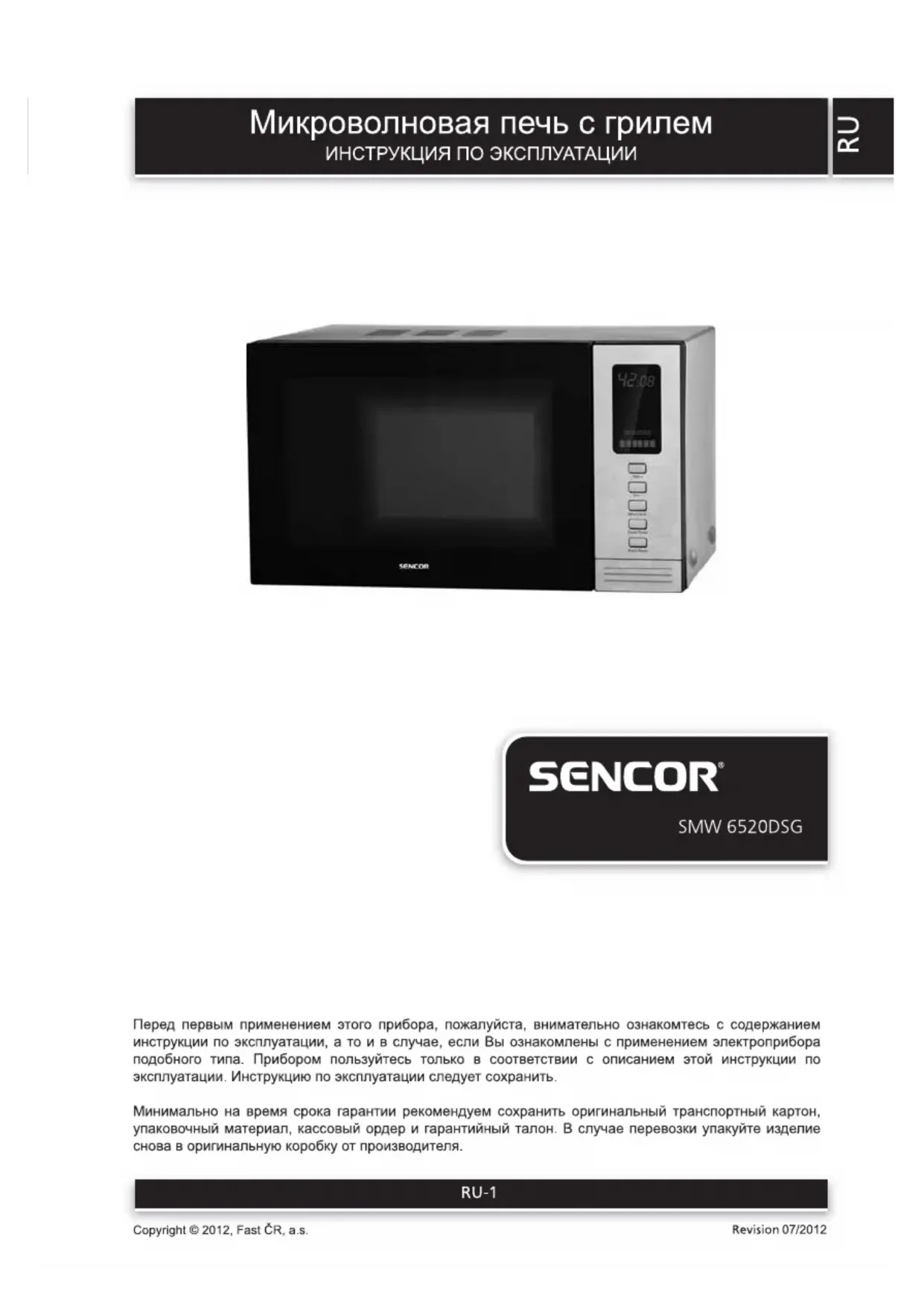 SMW 6520DSG - Four à micro-ondes SENCOR - Notice d'utilisation et mode d'emploi gratuit
