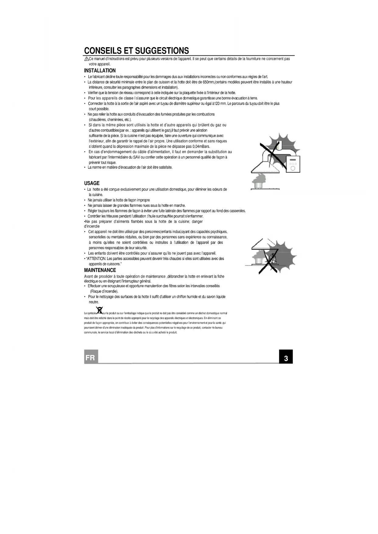 • Ne jamais utiliser la hotte de façon impropre