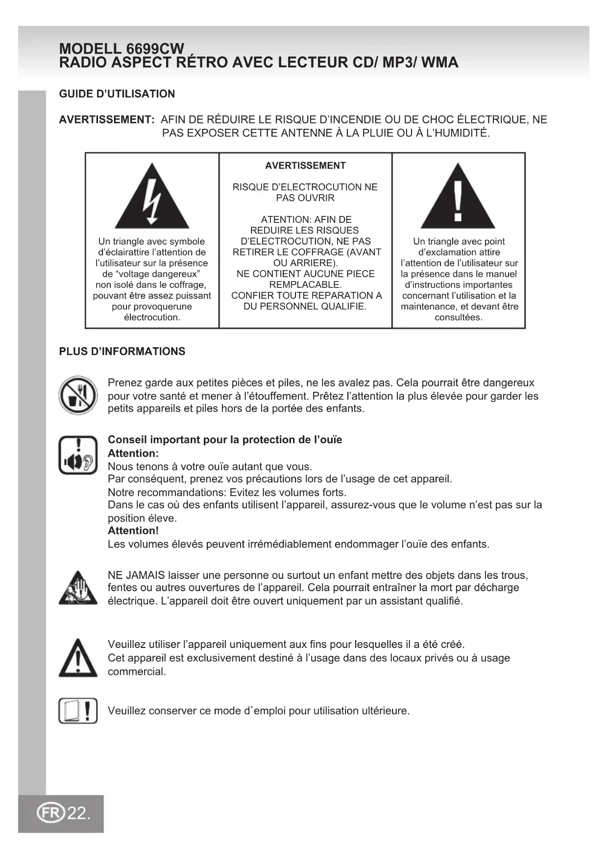 6699CW - Radio ELTA - Notice d'utilisation et mode d'emploi gratuit