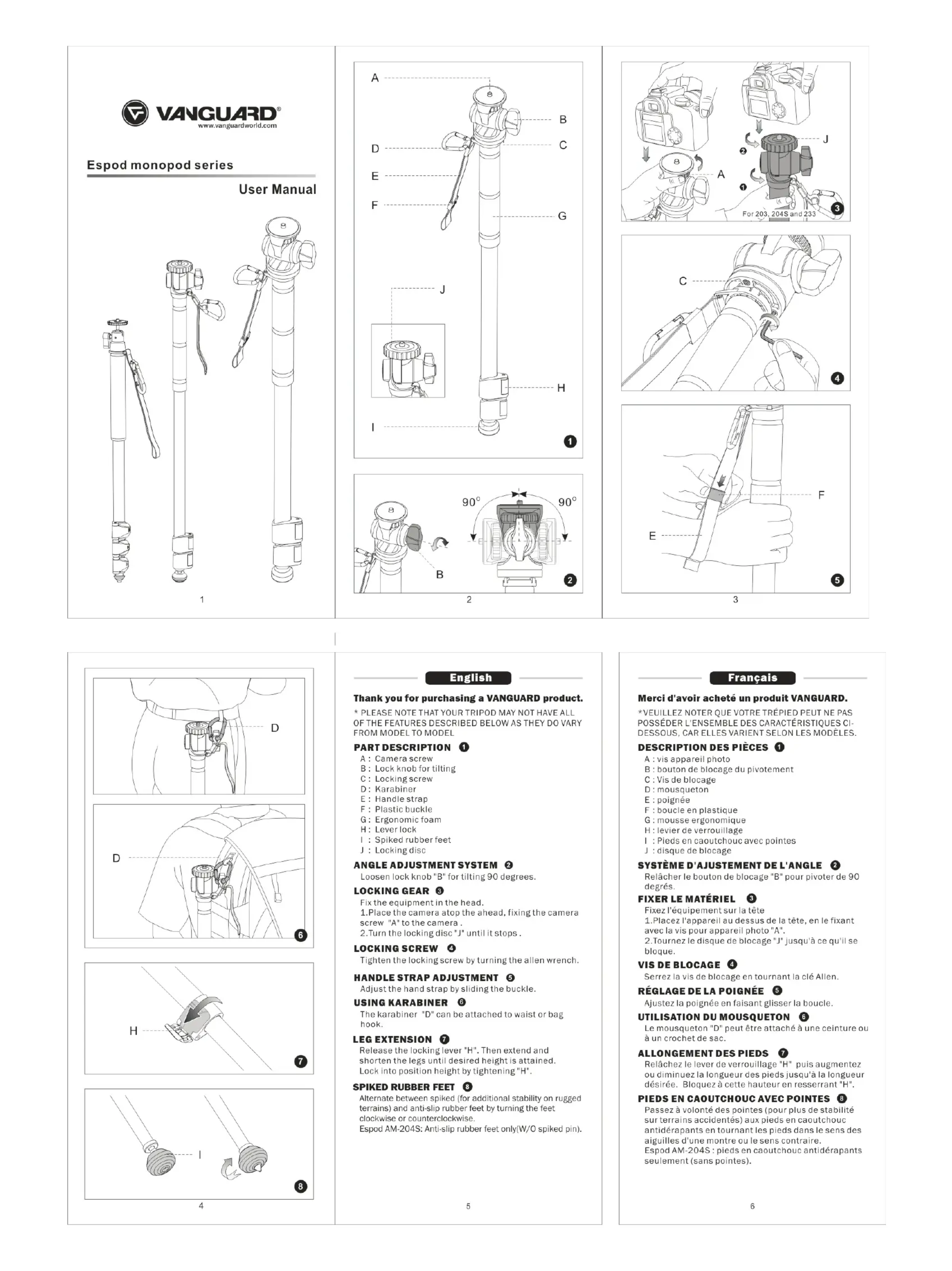 Espod AM 203 - Trépied Vanguard - Notice d'utilisation et mode d'emploi gratuit