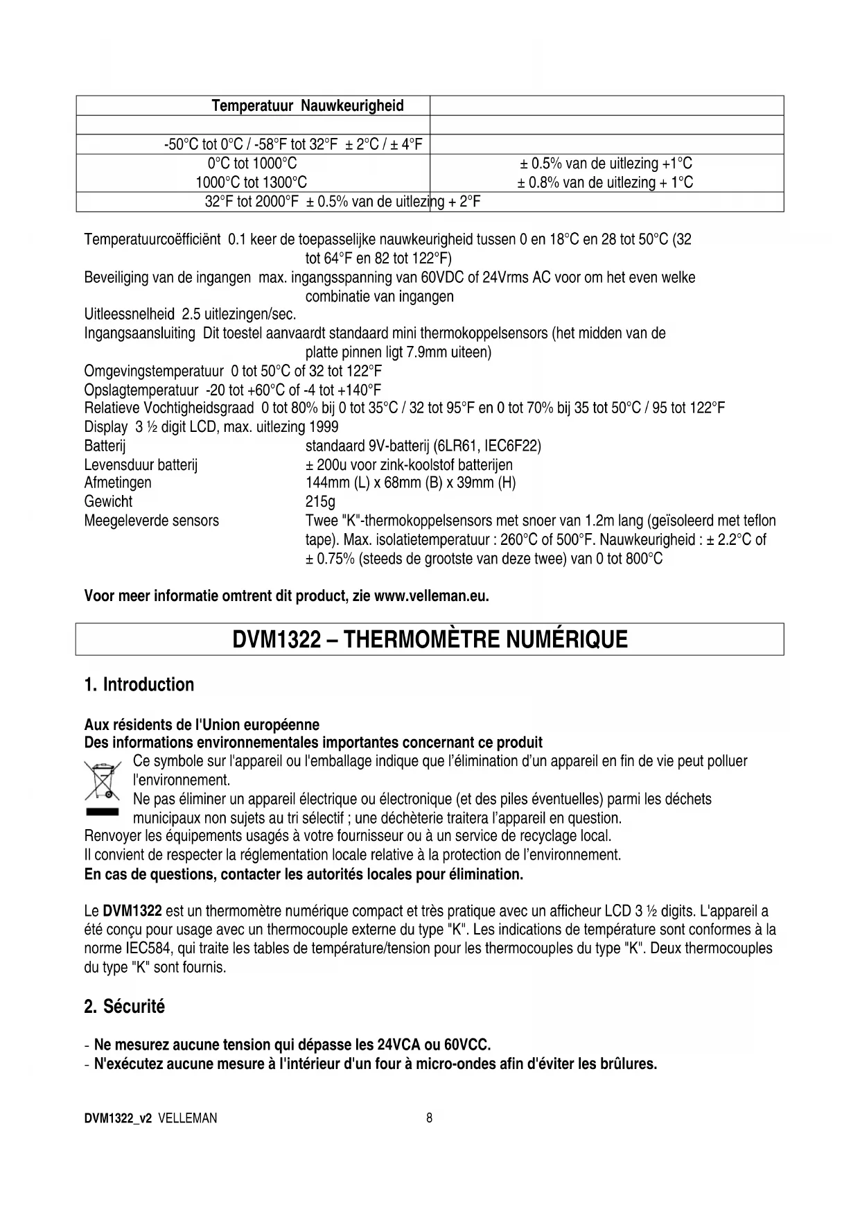 DVM1322 - Thermomètre VELLEMAN - Notice d'utilisation et mode d'emploi gratuit