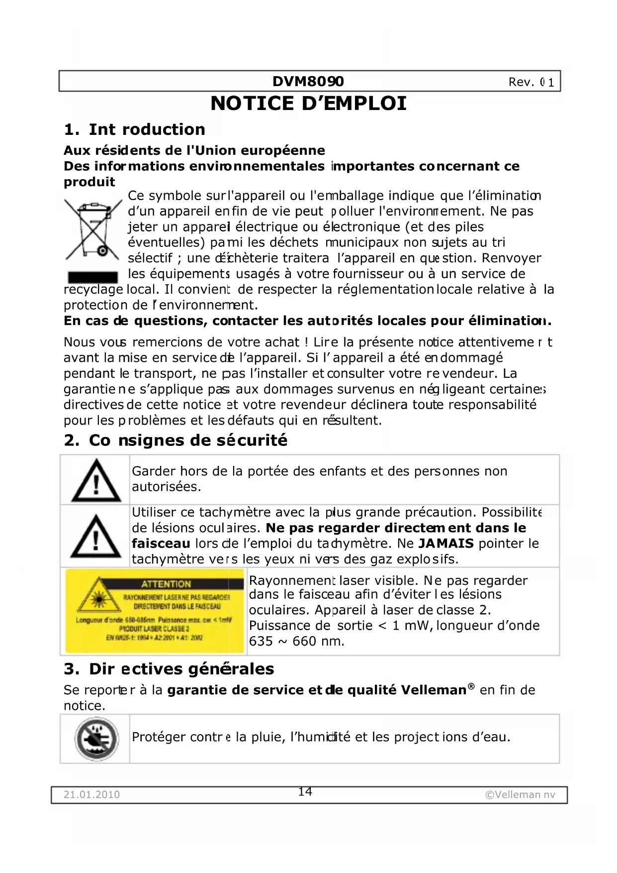 Retrouvez gratuitement la notice de l'appareil DVM8090 VELLEMAN au format PDF.