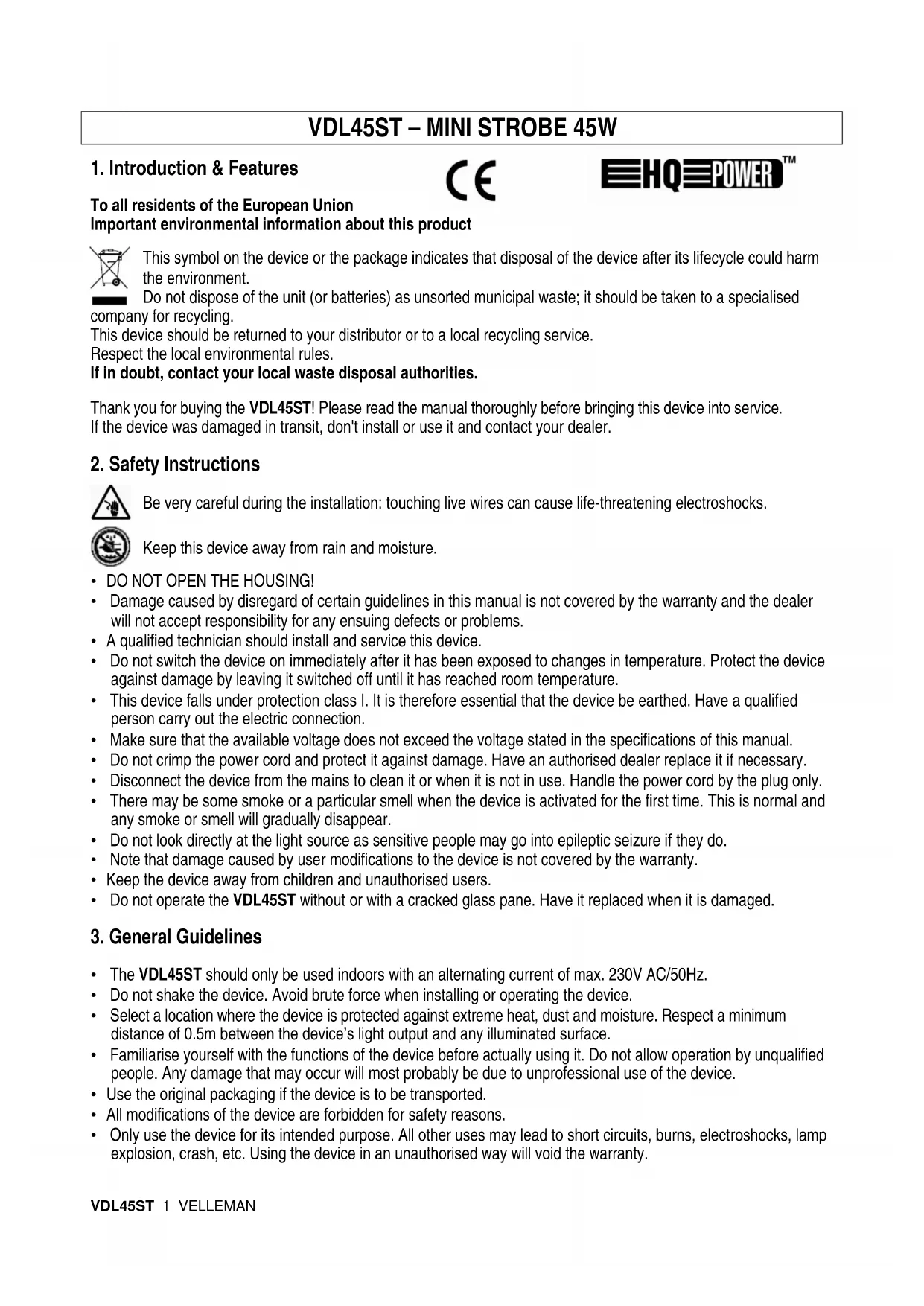 vdl45st - Machine à effet VELLEMAN - Notice d'utilisation et mode d'emploi gratuit