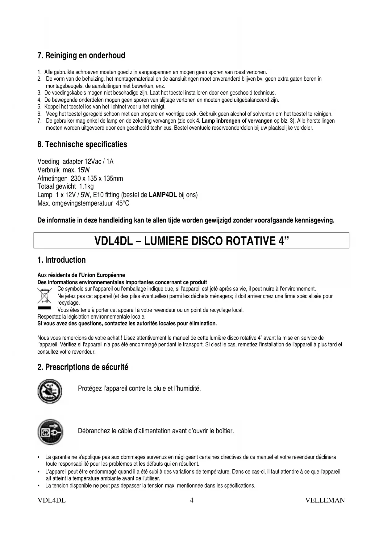 vdl4dl - Machine à effet VELLEMAN - Notice d'utilisation et mode d'emploi gratuit