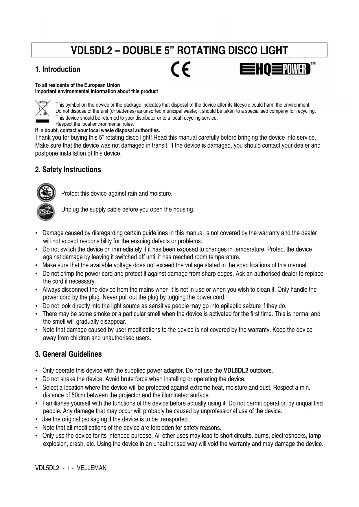 vdl5dl2 - Machine à effet VELLEMAN - Notice d'utilisation et mode d'emploi gratuit