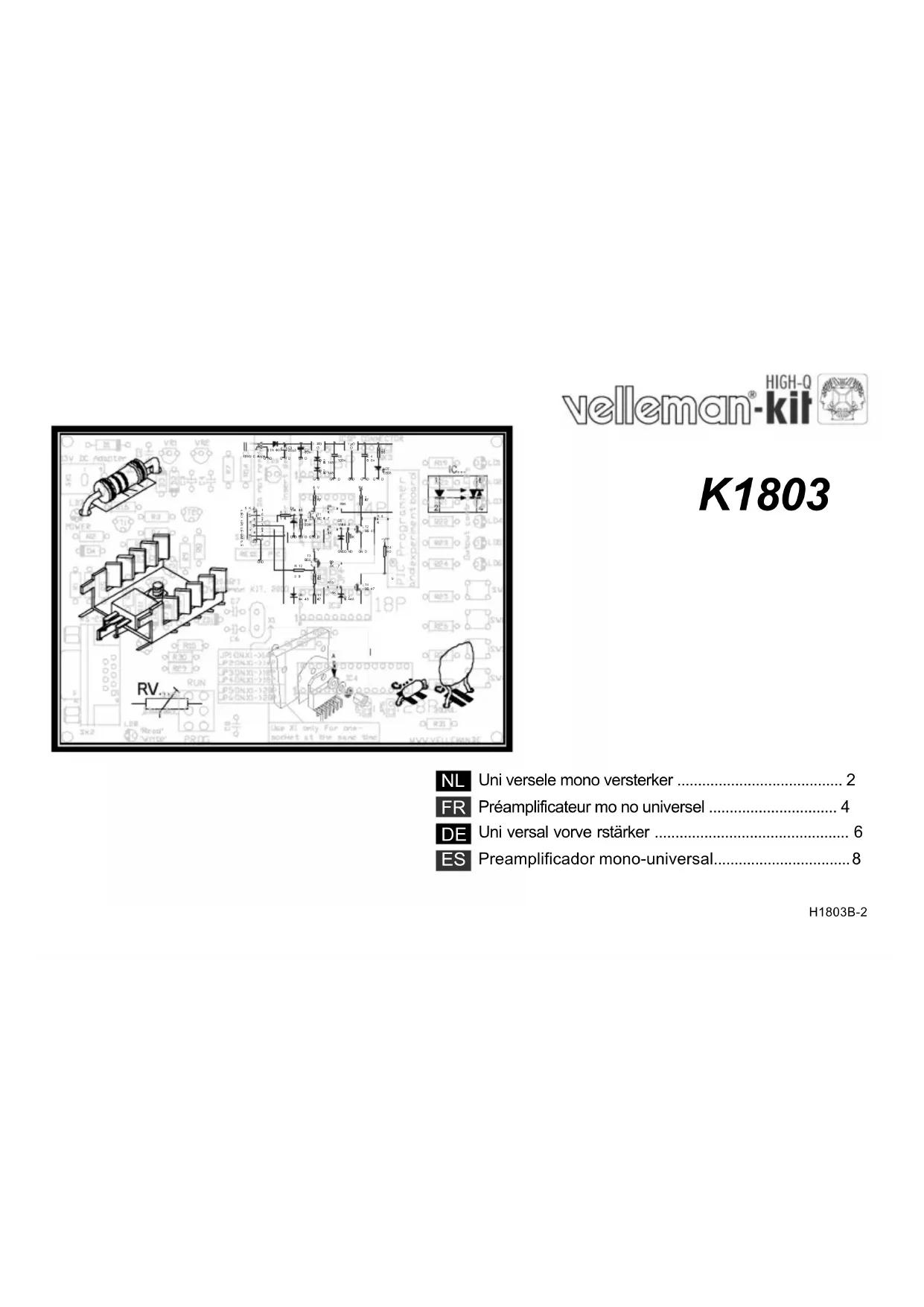 Retrouvez gratuitement la notice de l'appareil K1803 VELLEMAN au format PDF.