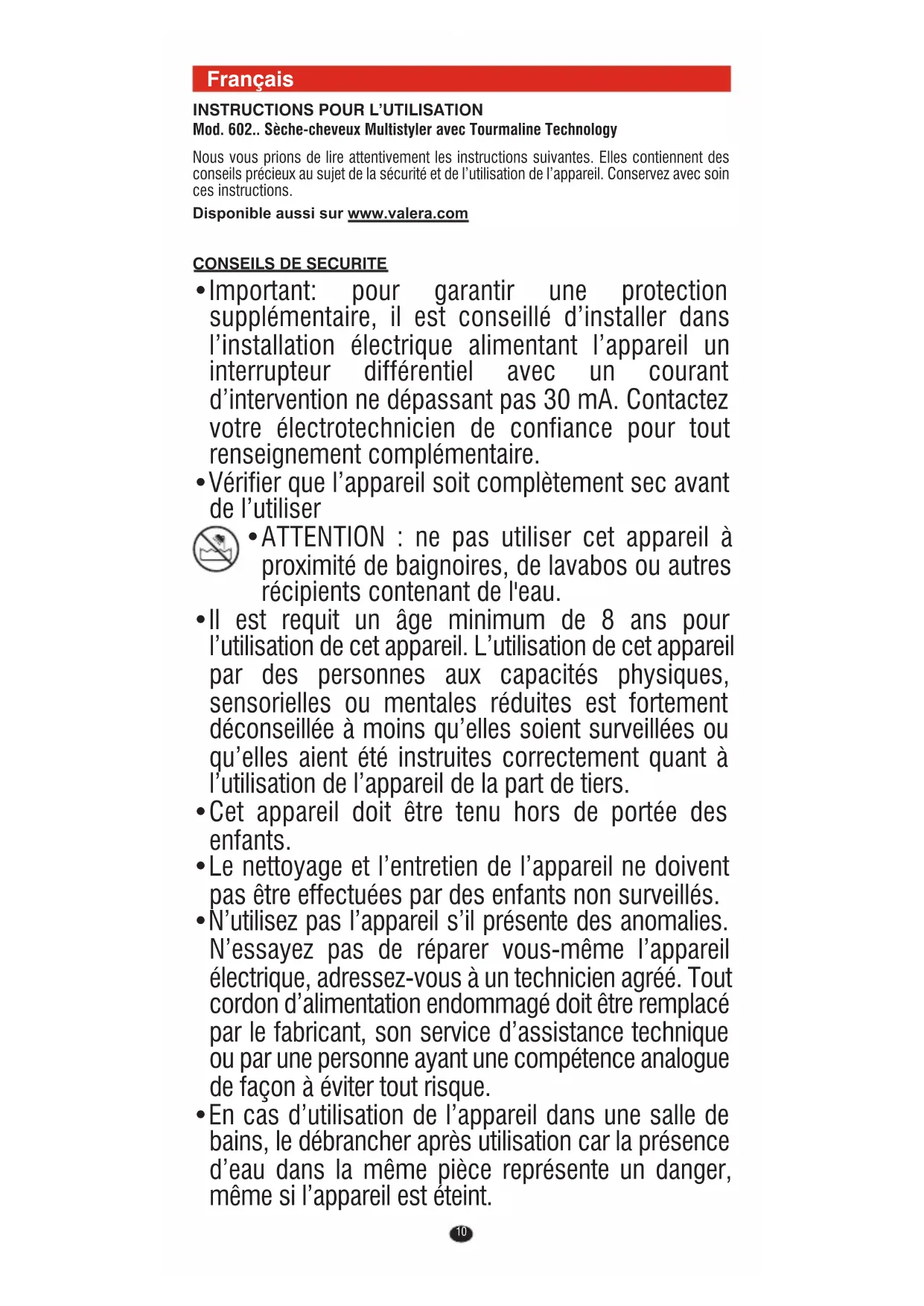 MODE D'EMPLOI Pro Style 400 Tourmaline 602.01B VALERA