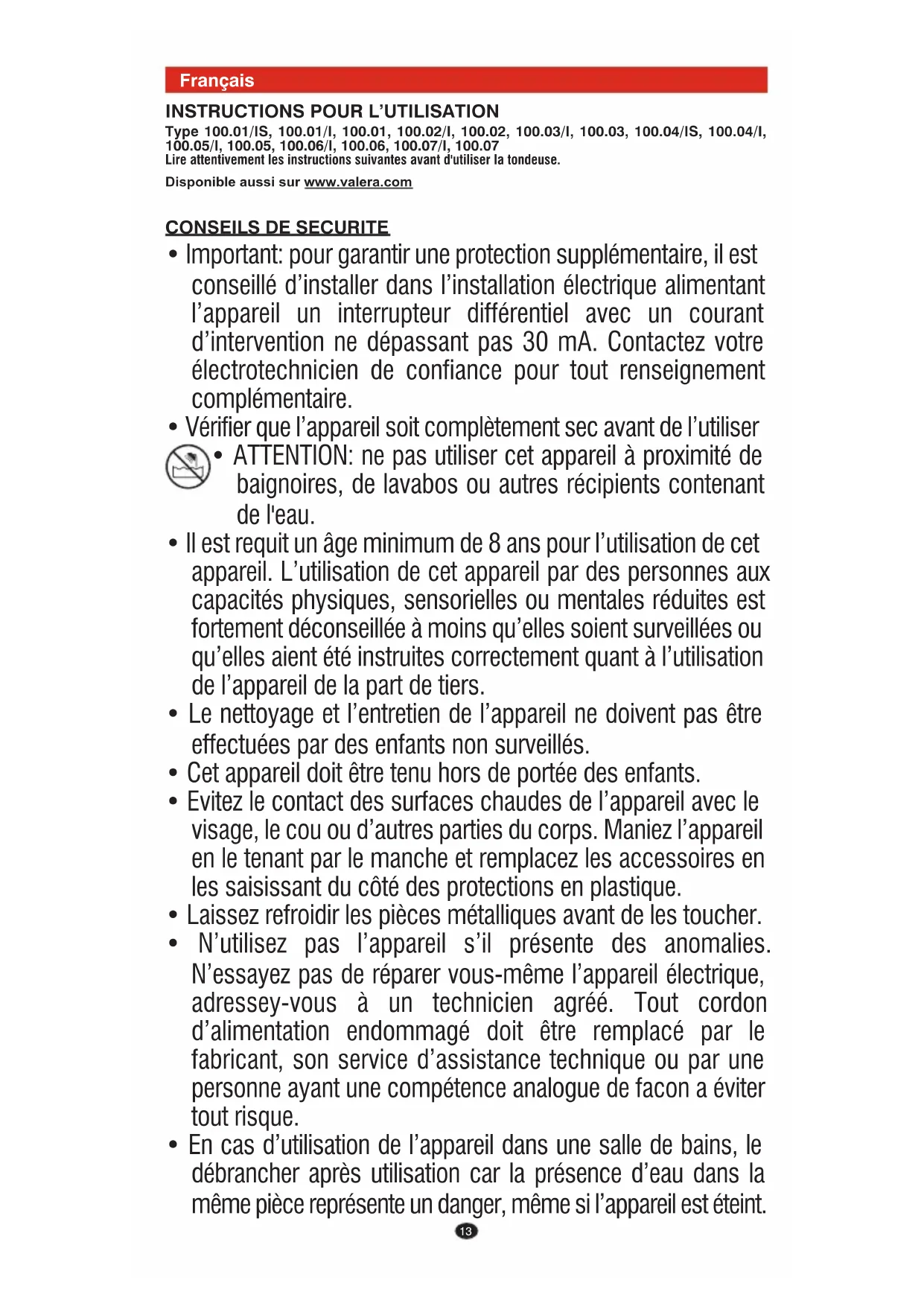 Swiss'x 100.01IS - Lisseur VALERA - Notice d'utilisation et mode d'emploi gratuit