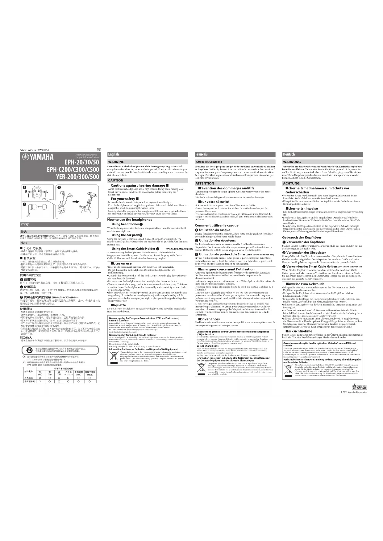 Téléchargez la notice de votre Ecouteur au format PDF gratuitement ! Retrouvez votre notice EPH20 - YAMAHA et reprennez votre appareil électronique en main. Sur cette page sont publiés tous les documents nécessaires à l'utilisation de votre appareil EPH20 de la marque YAMAHA.