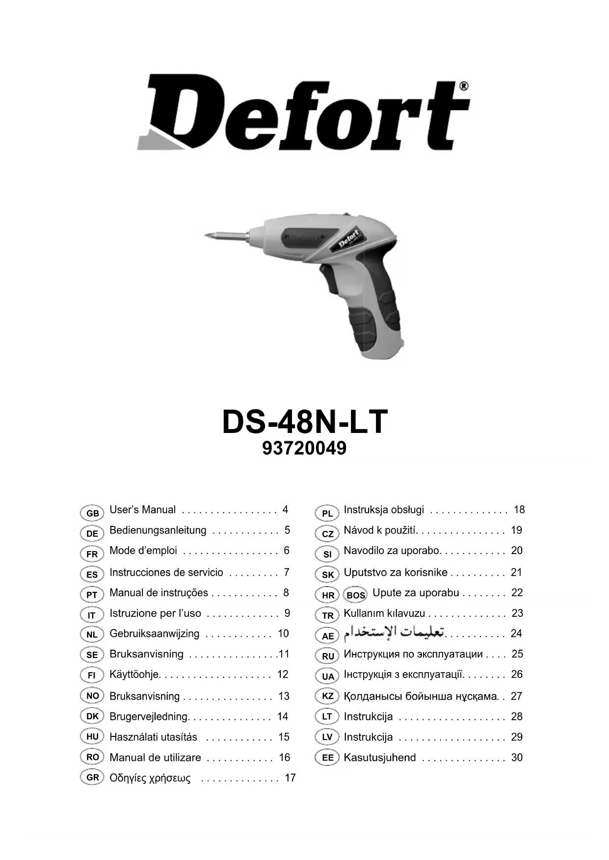 Retrouvez gratuitement la notice de l'appareil DS48NLT Defort au format PDF.