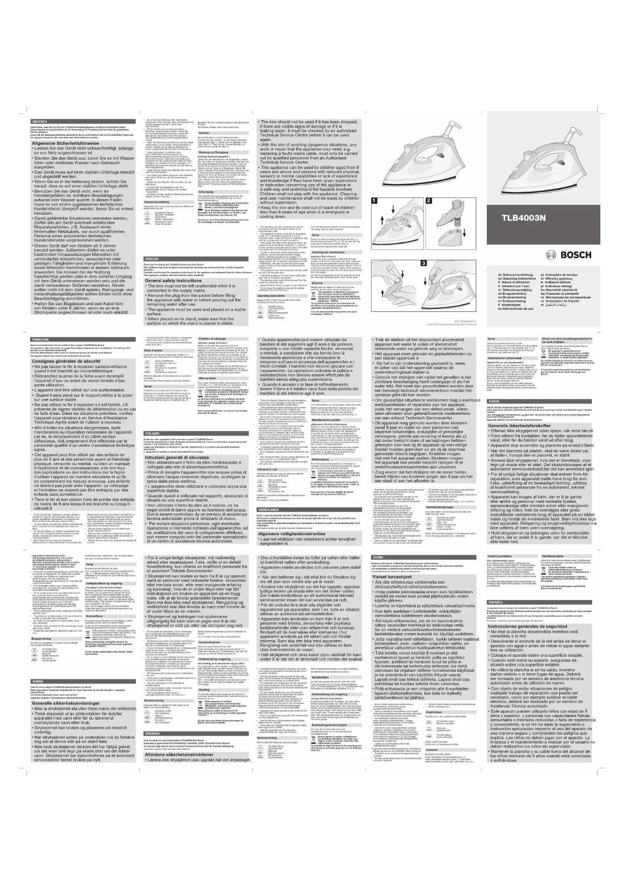 TLB4003N - Fer à repasser BOSCH - Notice d'utilisation et mode d'emploi gratuit