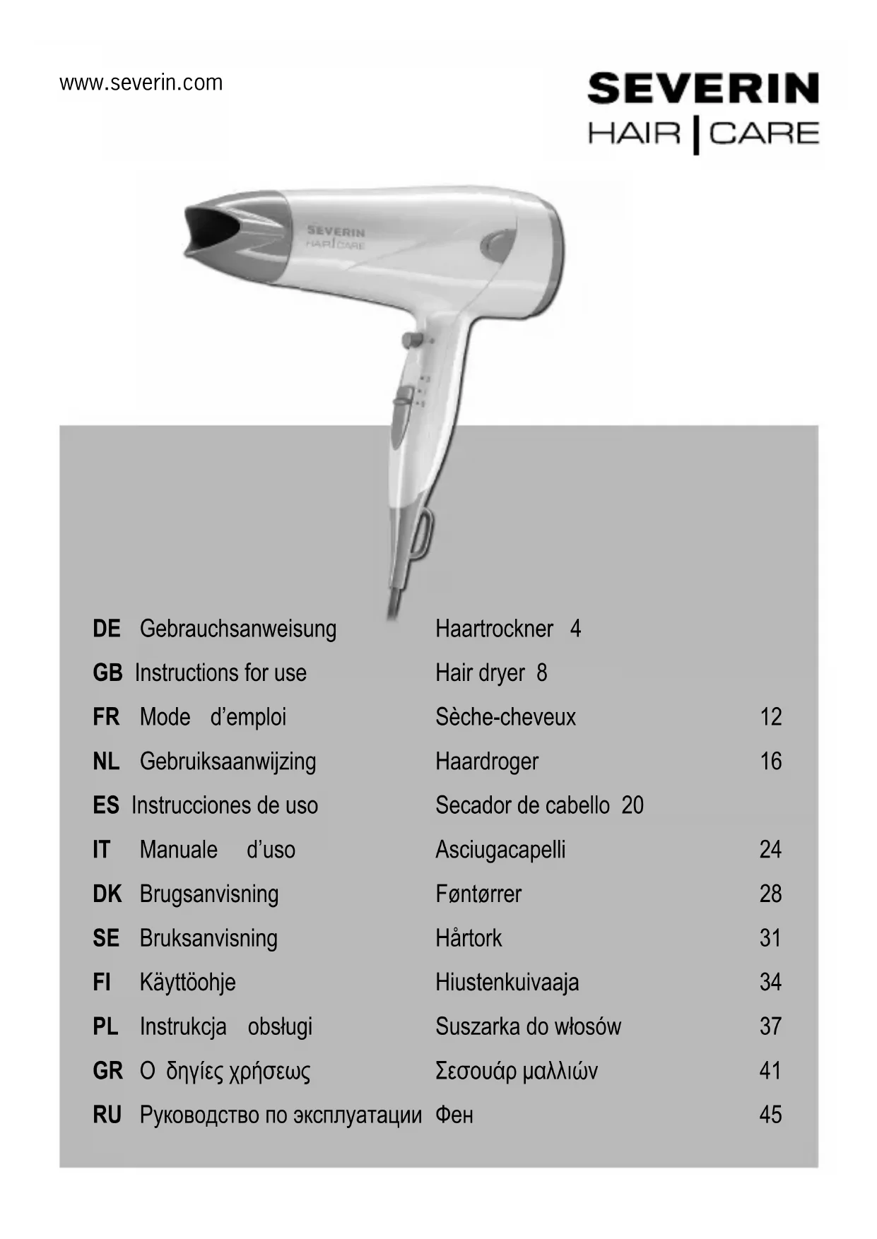 HT 0162 - Sèche-cheveux SEVERIN - Notice d'utilisation et mode d'emploi gratuit