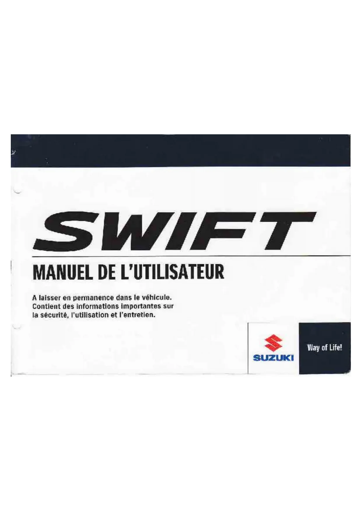 A laisser permanence dans le véhicule.Contient des informations importantes suI la sécurité, I'utilisation et I'entretien.Modèle SWIFT