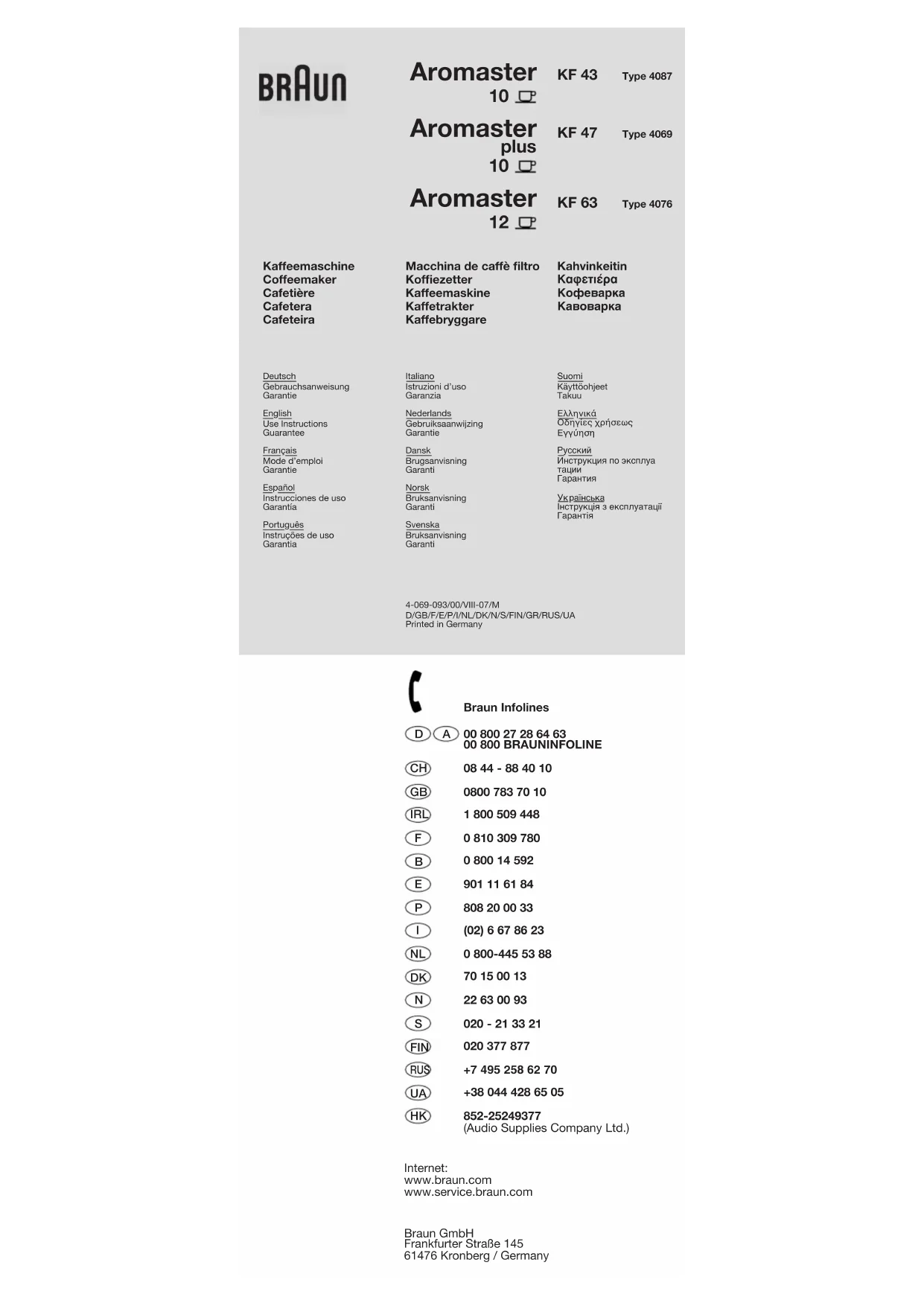 Retrouvez gratuitement la notice de l'appareil Aromaster KF 63 BRAUN au format PDF.